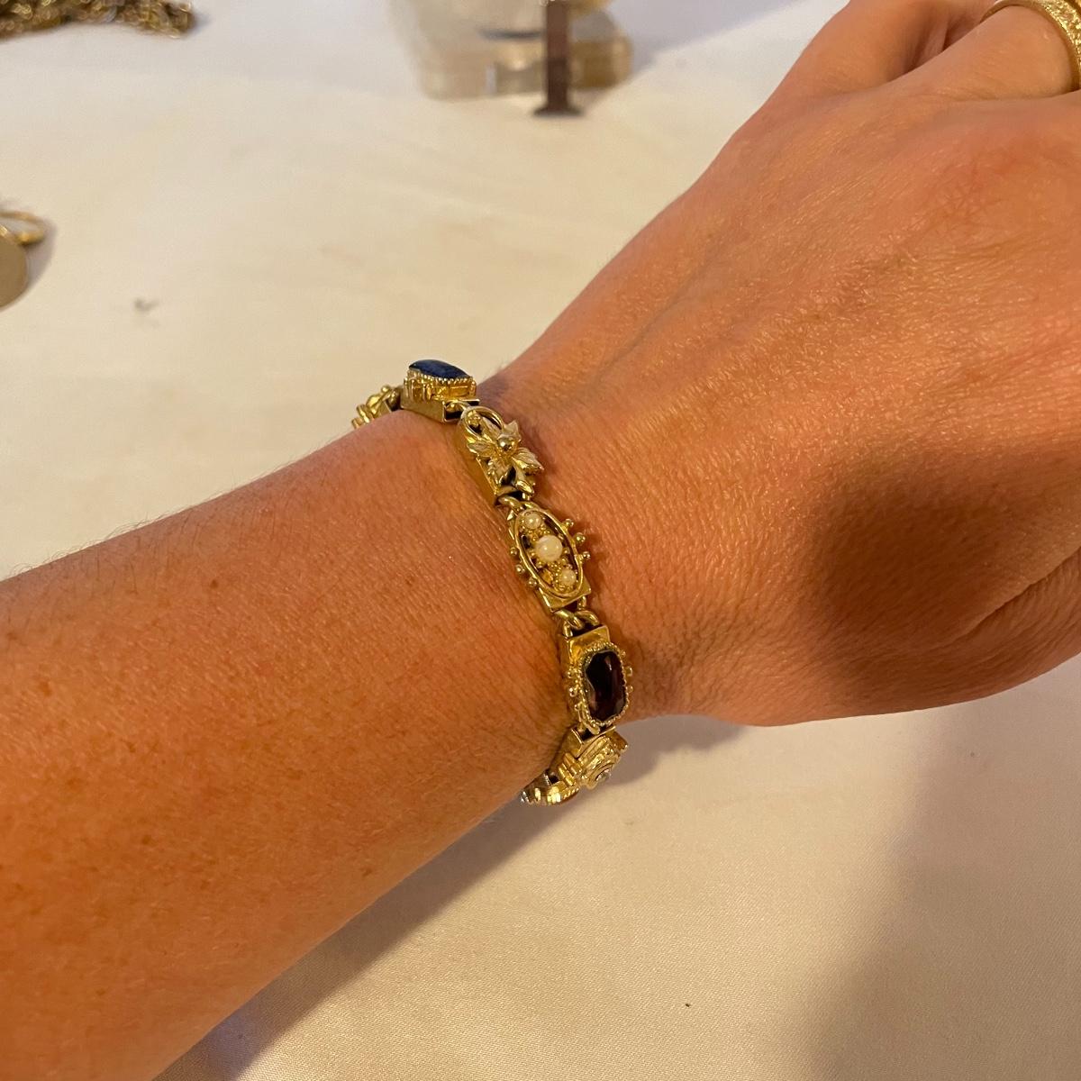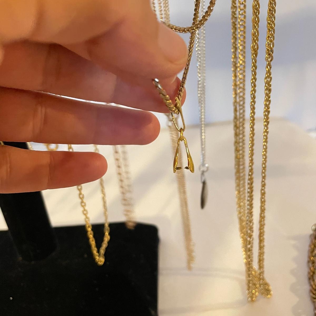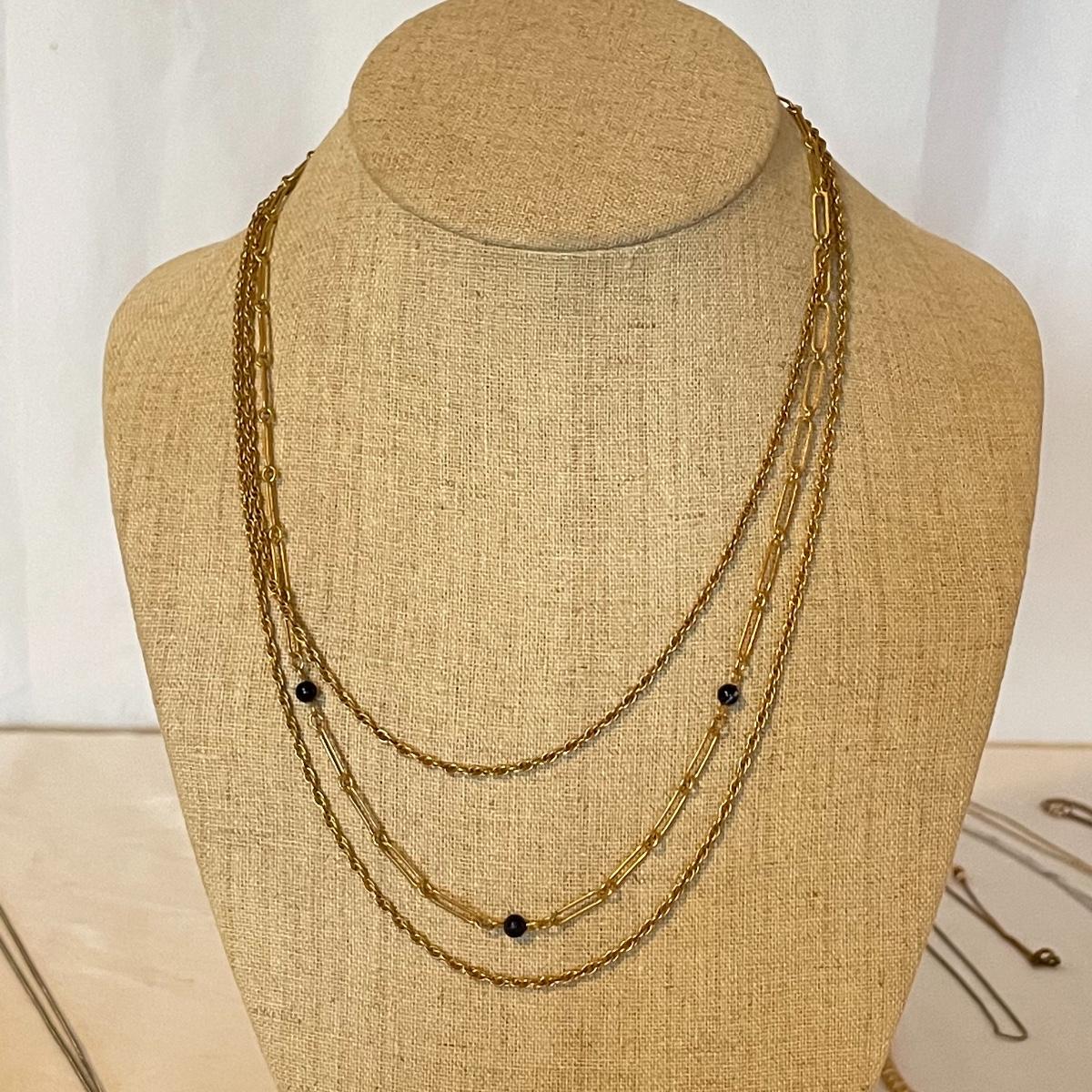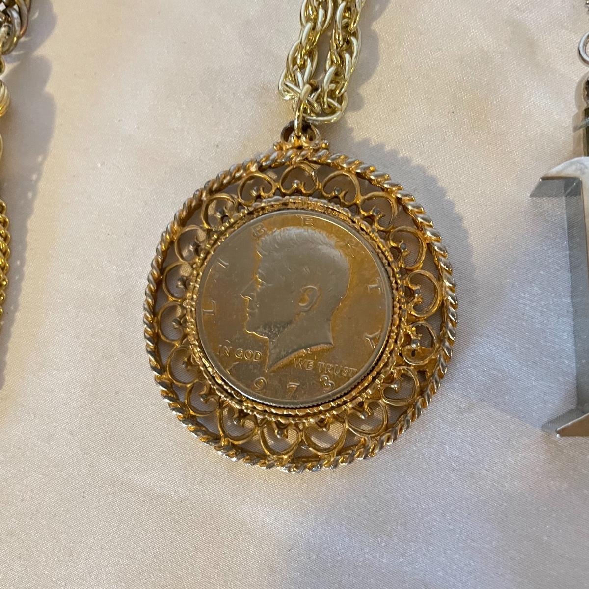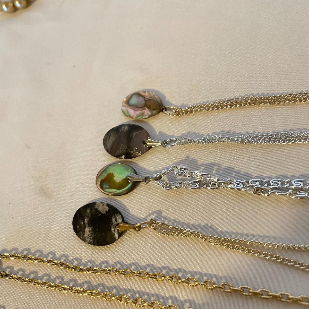 This is a classic must-have collection from everyday to elegant. Selection includes twenty four necklaces with chains, pearls and shells. All known clasp markings are shown in photos, with the exception of two more Germany markings on the shell necklaces. Necklaces range from 16” to 56” Lot features older and newer pieces and even a perfume #1 pendant. This collection also offers a variety of over fifteen bracelets, all metal with stone, bead, charms and more. Lastly, brooches, lingerie clips and an adorable frog hat pin. See images. Shipping available.