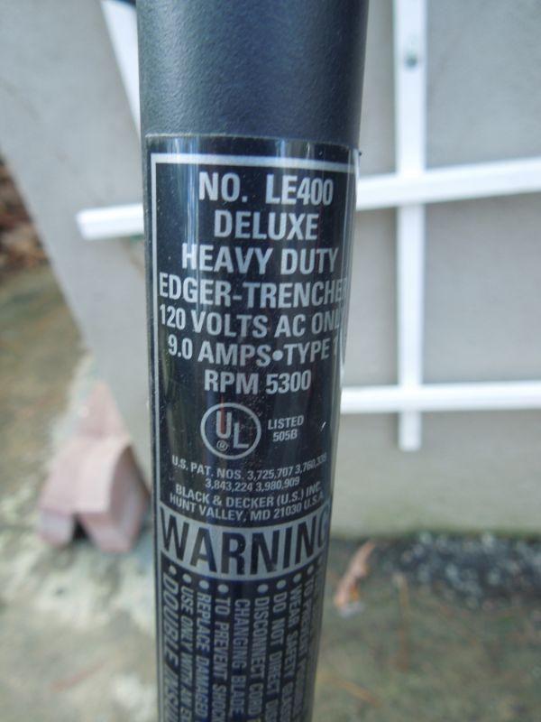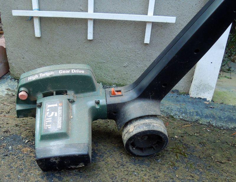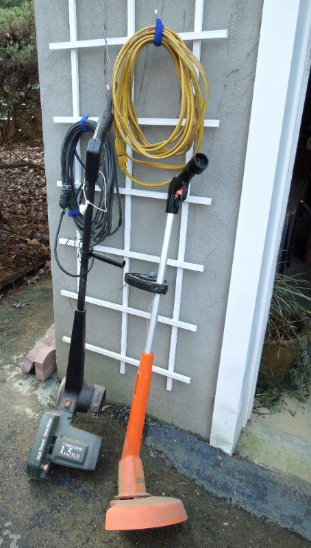 Black and Decker 1.5 hp electric edger model LE400 with extension cord and a Cutter 12" model 8255 electric grass trimmer and weed whacker with extension cord.