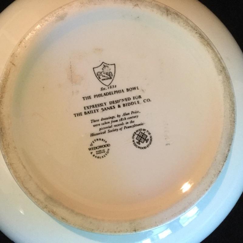 A Porcelain Wedgwood Bowl designed for the Bailey Banks and Biddle Co. The Philadelphia bowl is by Wedgwood, made in England 12 1/4” X 5 1/2” H