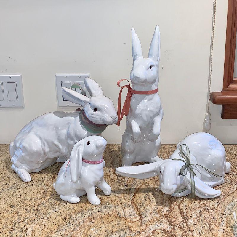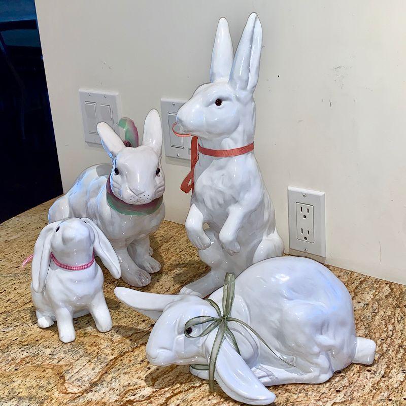 Large ceramic white rabbits. Tallest one is 14" tall.