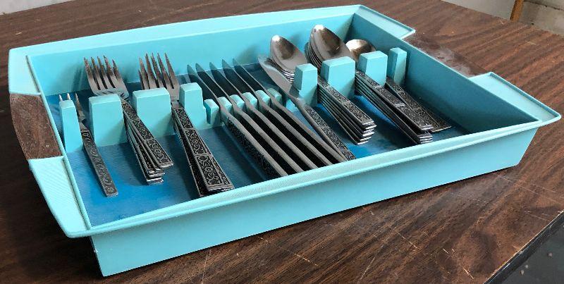 Used Service for 6 in an exceptionally cool Turquoise Tray holder