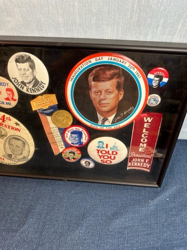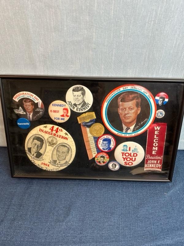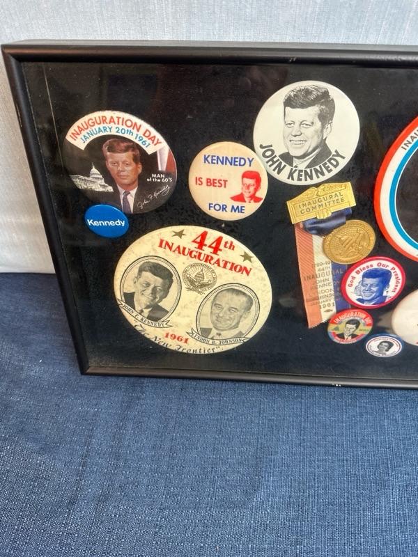 Lot 45, John F. Kennedy inauguration day buttons, 18 1/2“ x 11 1/2“