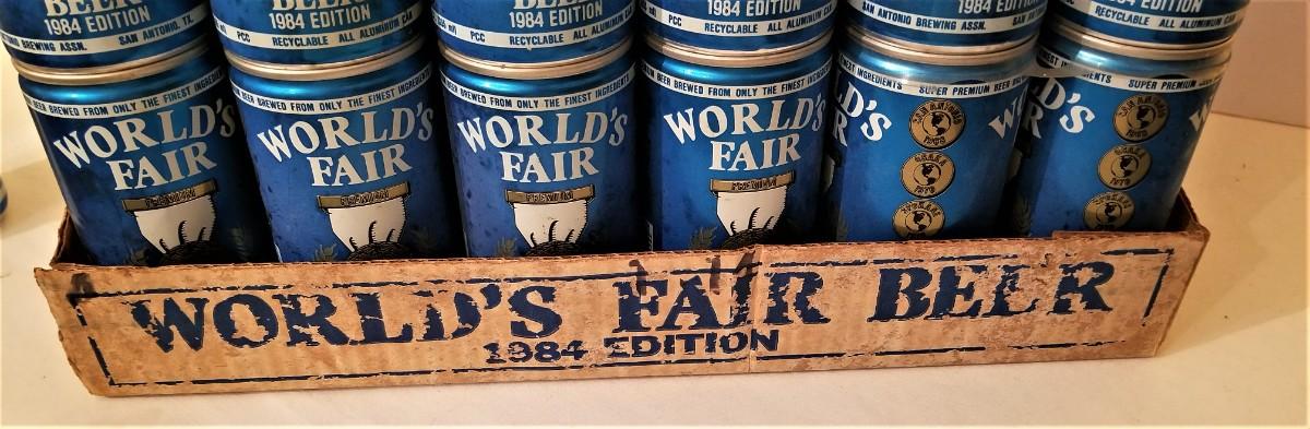 Lot #45  Lot of 1984 World's Fair Beer Cans in Original Flat - one still intact