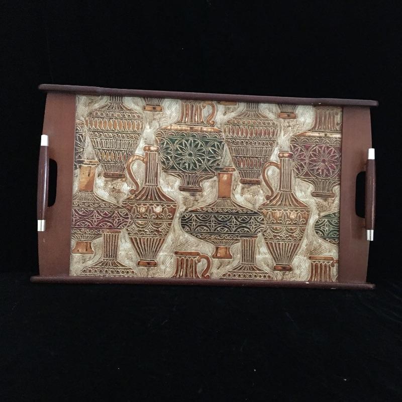 Electric MCM coffee percolator with sugar bowl and mini pitcher, silver Nambé bowl and a beautiful wooden serving tray. Percolator could not be tested for working condition. Tray measures 12” x 21.5”.