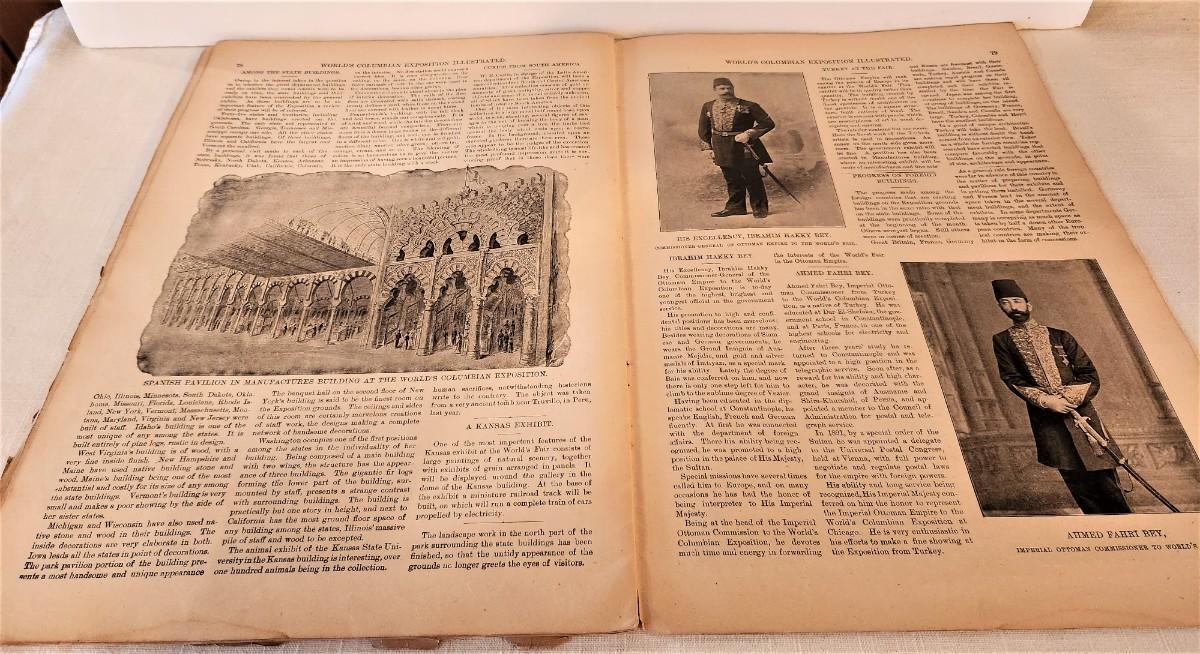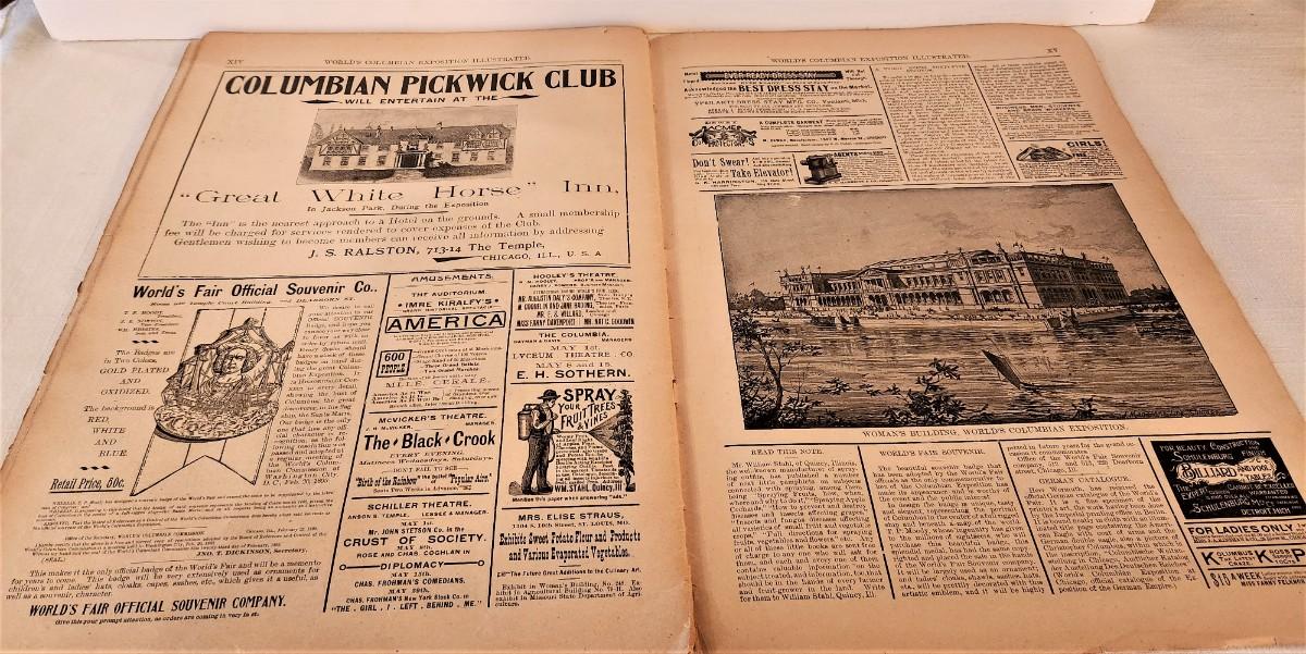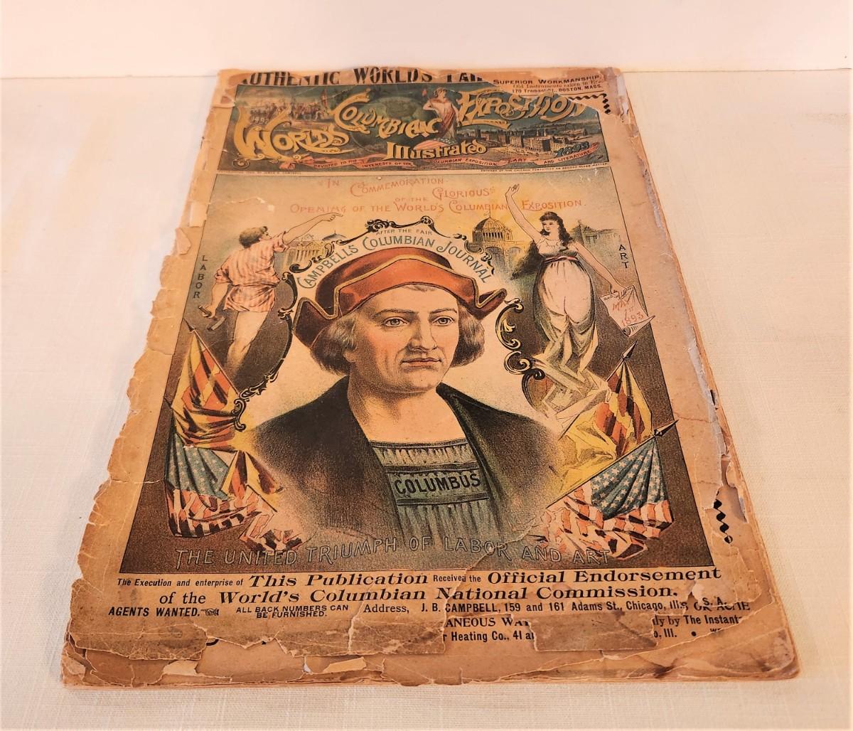 1893 Columbia Exhibition (World's Fair) - Chicago - original program. Rough, but complete. Lot of great photos and ads. Oversize, measures 11" x 15".