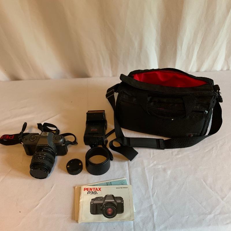 This is a Pentax P30 film camera that appears to be in good condition. Flash, lens covers and manual included and in a nice camera bag. Go back to the old school way of taking pictures. Shipping available.