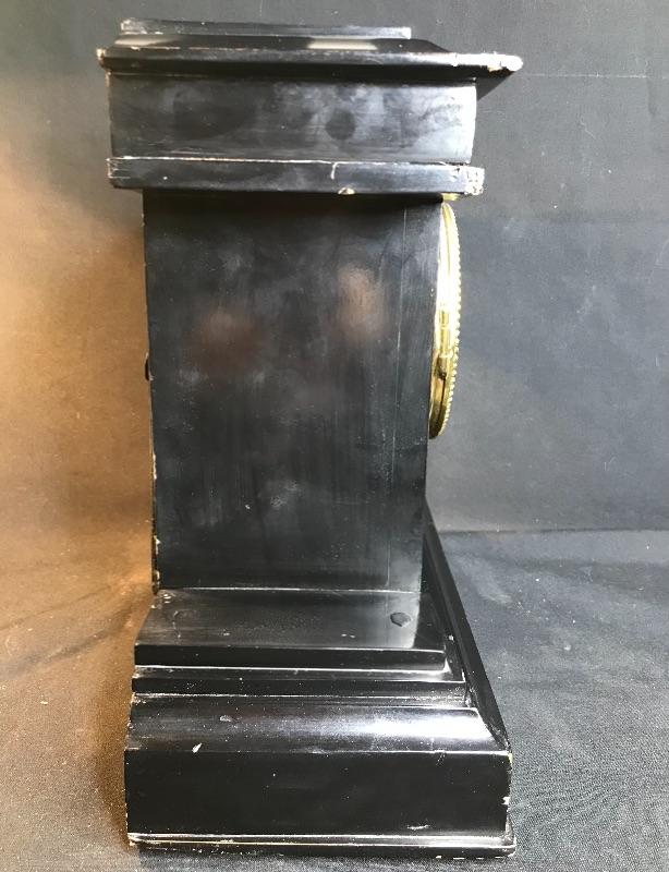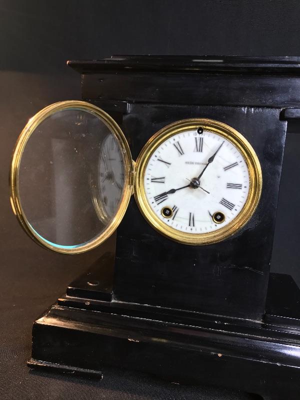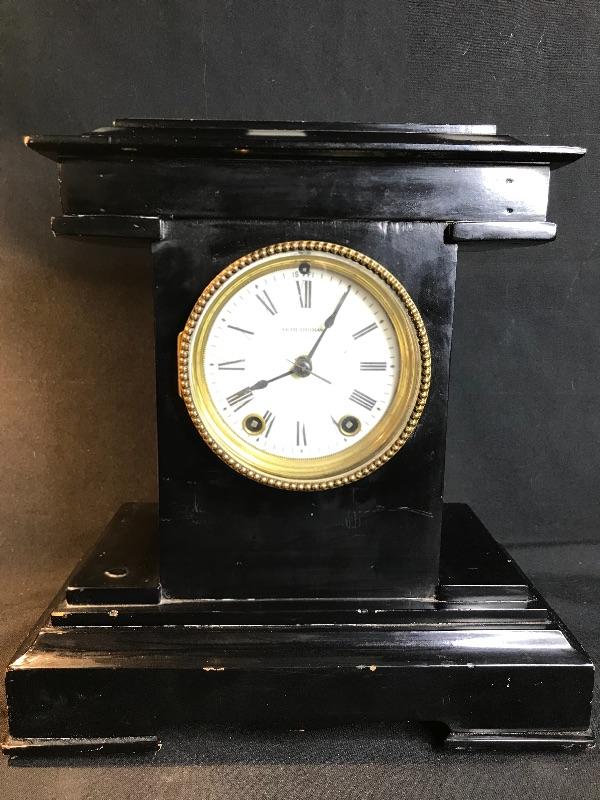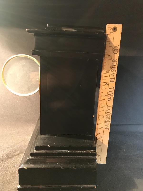 Antique mantle clock, working condition, no key. MH Please see all pictures for content of the lot, condition of the lot, and measurements if taken. Pictures are the best representation of the items listed and items are untested unless indicated in description. Thank you for looking and have fun bidding!
