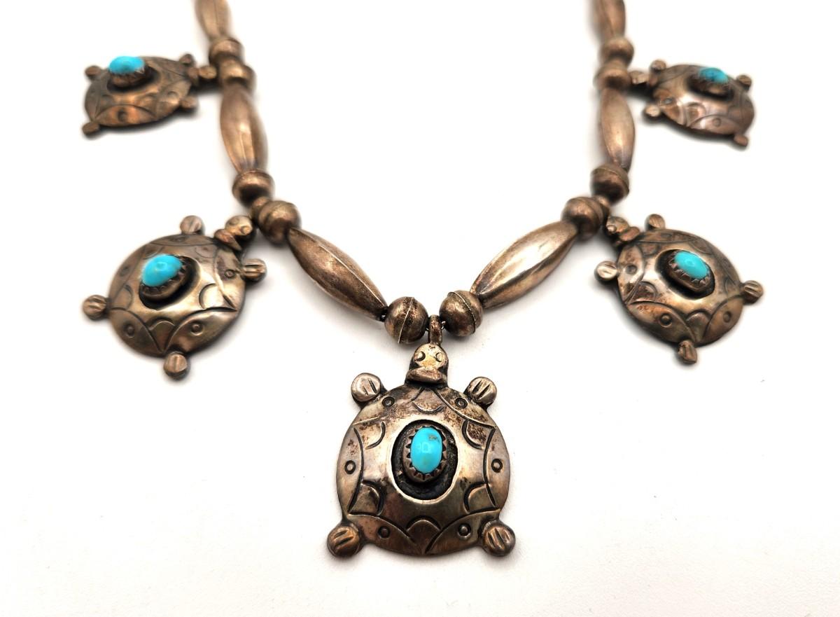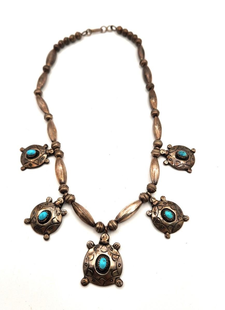 Lot #45 Sterling Turquoise Turtle Neklace - Artisan piece (signed) Alvin Vandever