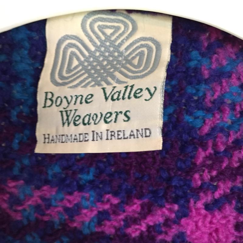 Delightful Bayne Valley Weavers handmade Irish wool sweater, poncho, wool scarf, hats, and more.