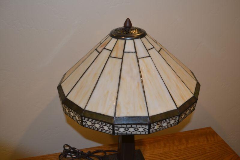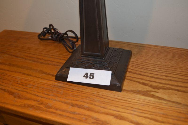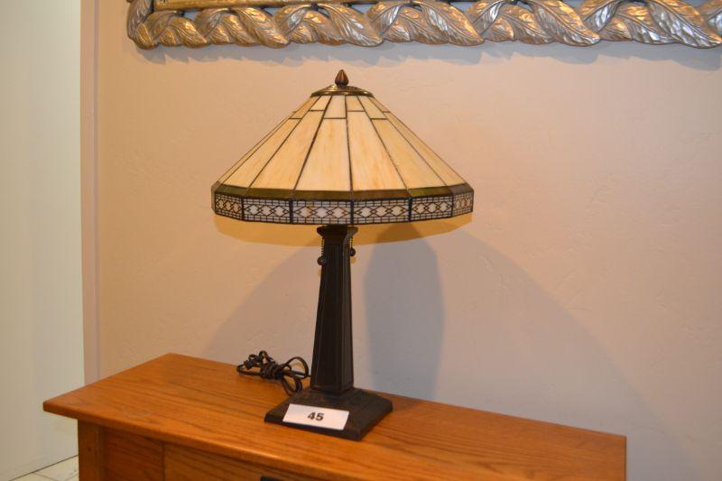LOT 45 TABLE LAMP WITH METAL BASE AND FAUX STAINED GLASS SHADE