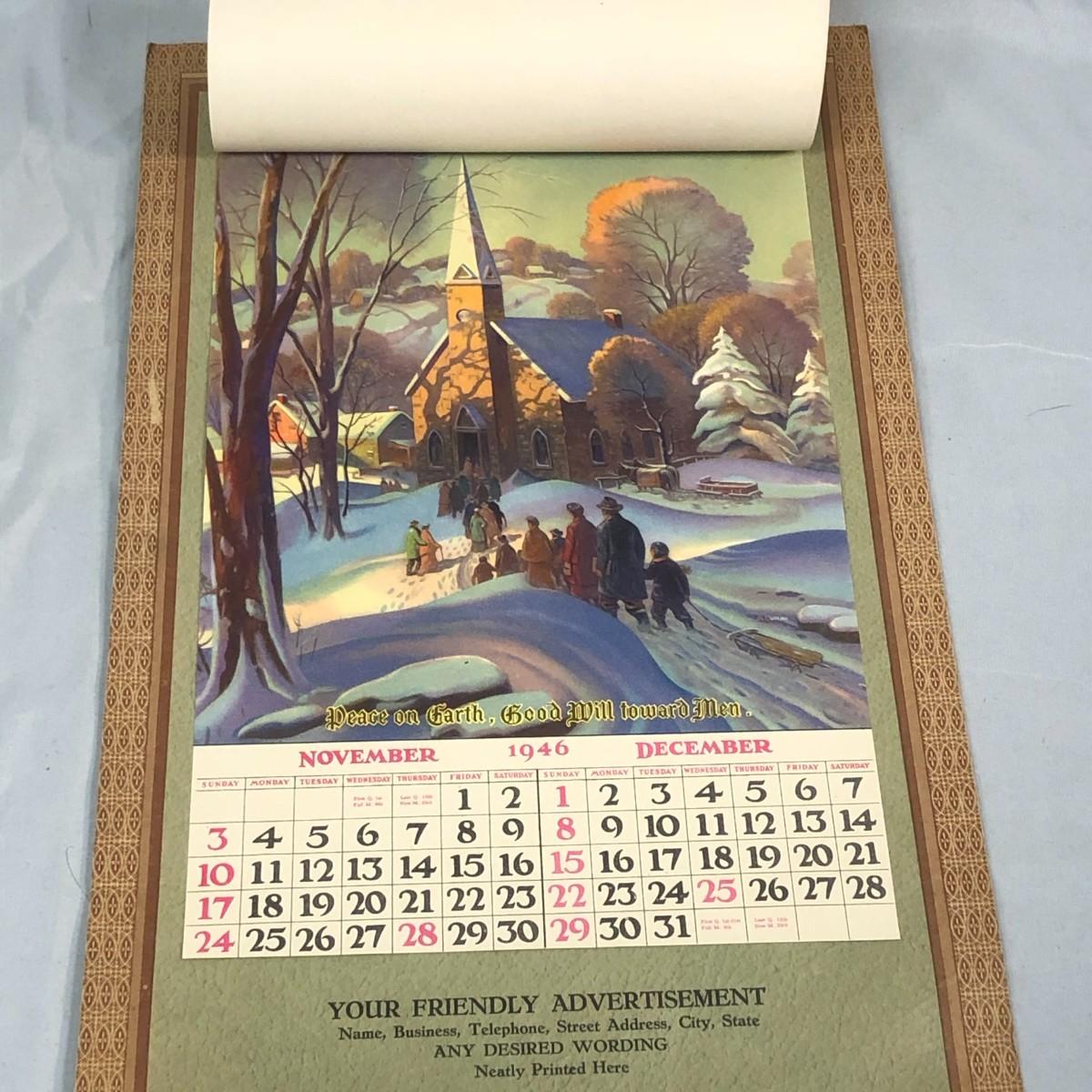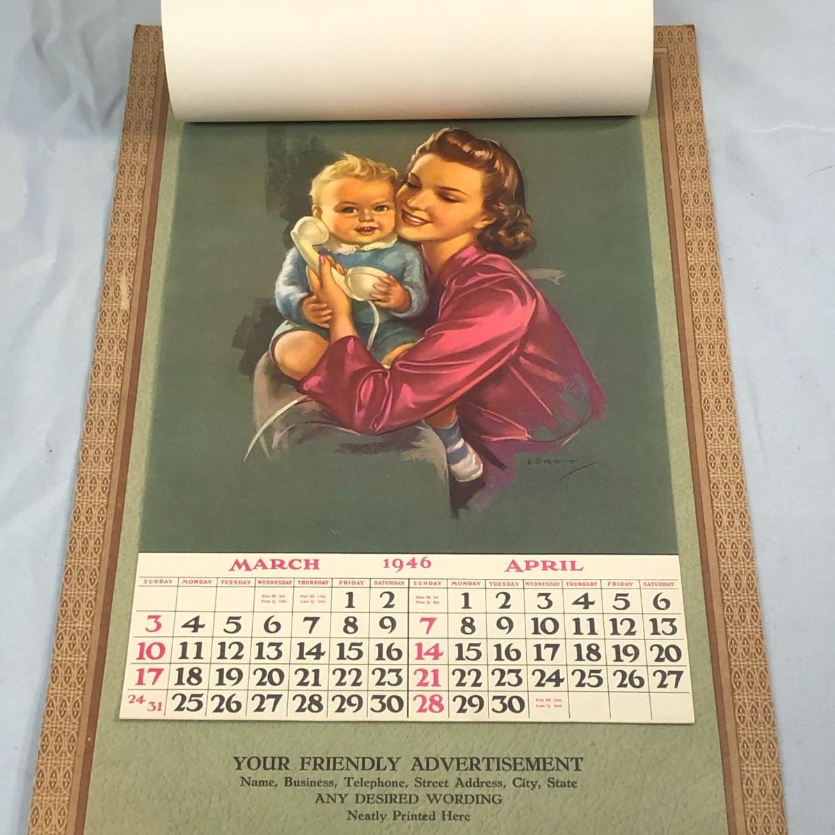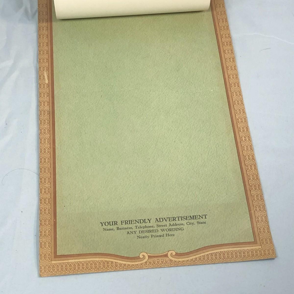This was a salesman's sample - businesses would order copies with their information on them to give away to customers. This one is in excellent shape and even though I would leave it intact, it could be taken apart and the pages framed because the artwork is great. It is 9.5" x 15.5".
