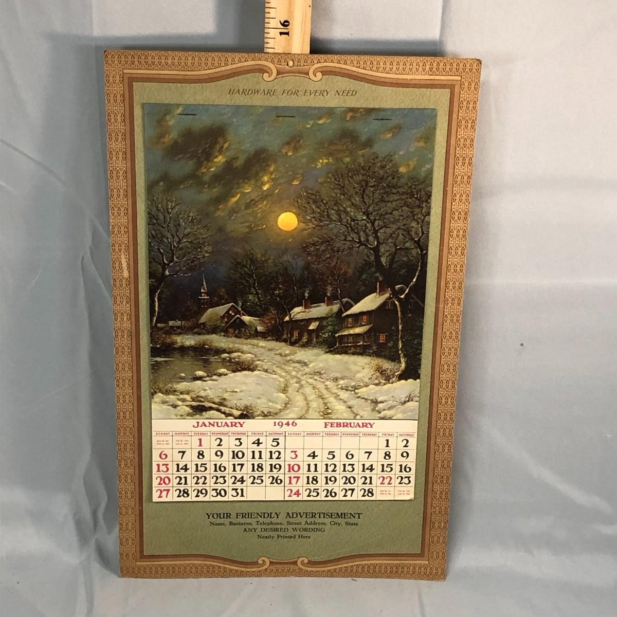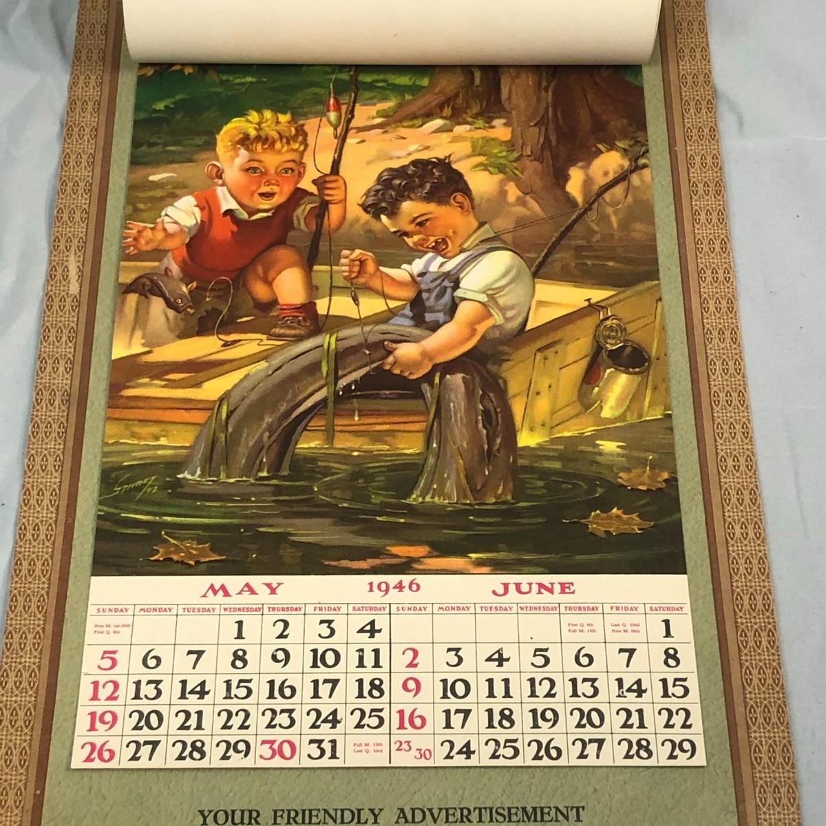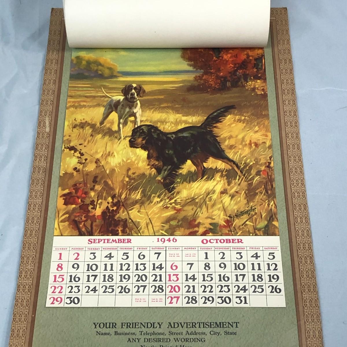 This was a salesman's sample - businesses would order copies with their information on them to give away to customers. This one is in excellent shape and even though I would leave it intact, it could be taken apart and the pages framed because the artwork is great. It is 9.5" x 15.5".