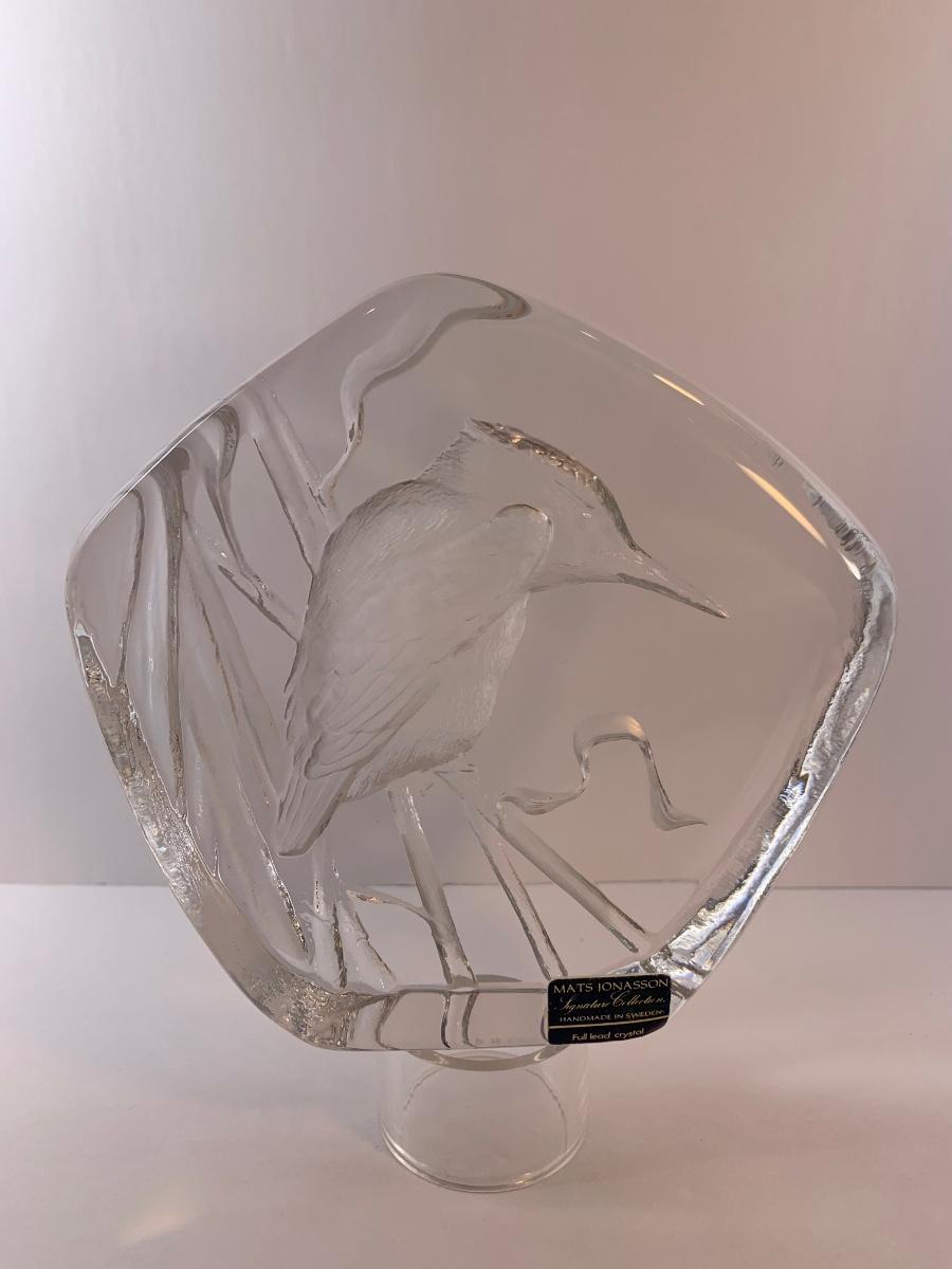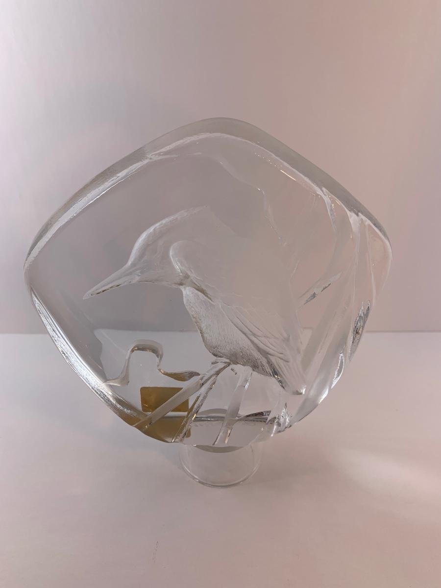 Mats Jonasson solid lead crystal Kingfisher made in Sweden. Signed on bottom "Mats Jonasson Sweden 3296", 5 1/4" x 4 3/4"