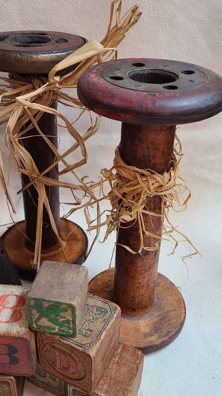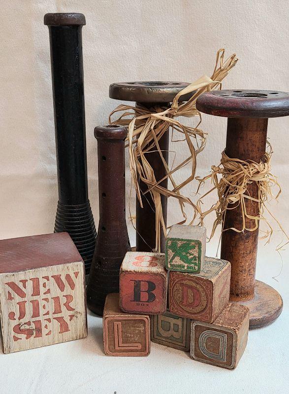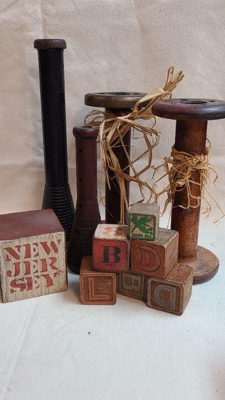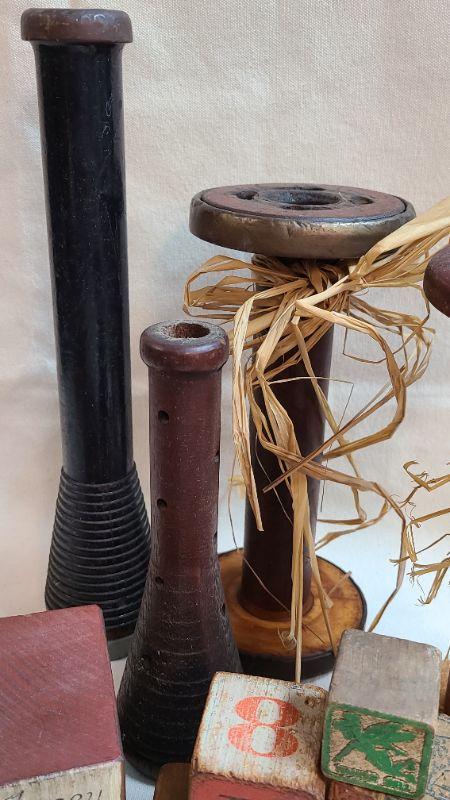 Wood Bobbins/Blocks. Excellent decor! Please see all pictures for condition of the items listed and what is included in the lot. Pictures will also show any measurements if taken and is the best representation of the items. Thank you for looking and have fun bidding! We appreciate Treasure Hunters!