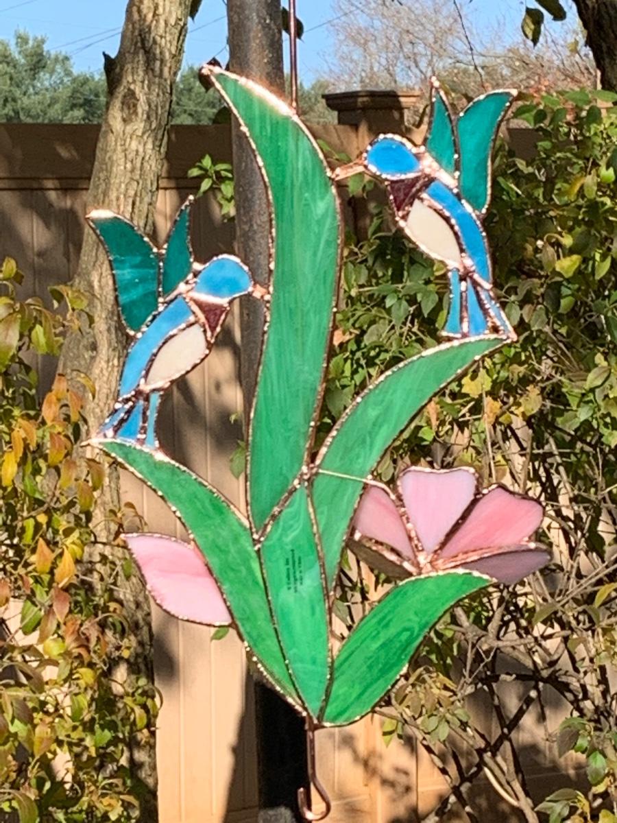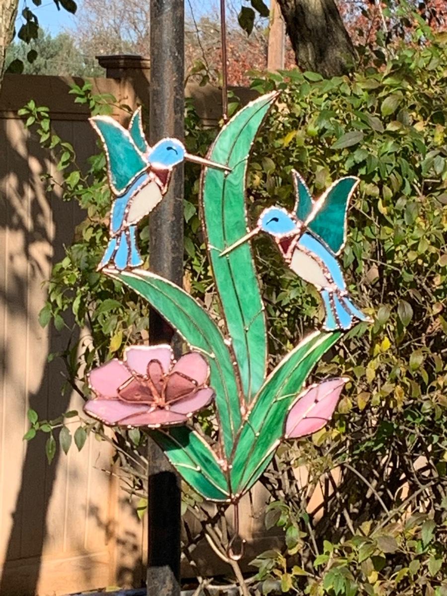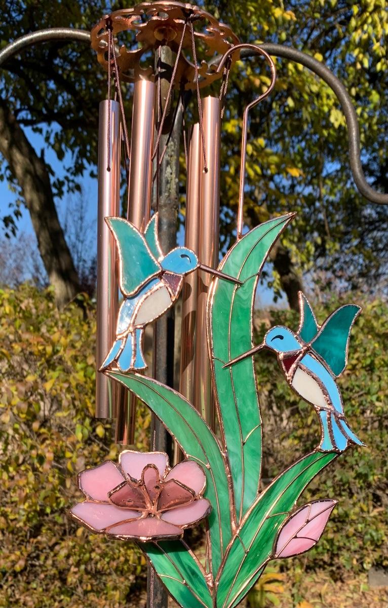 Lot 451: New Gallery Hummingbird Wind Chimes with Stained Glass