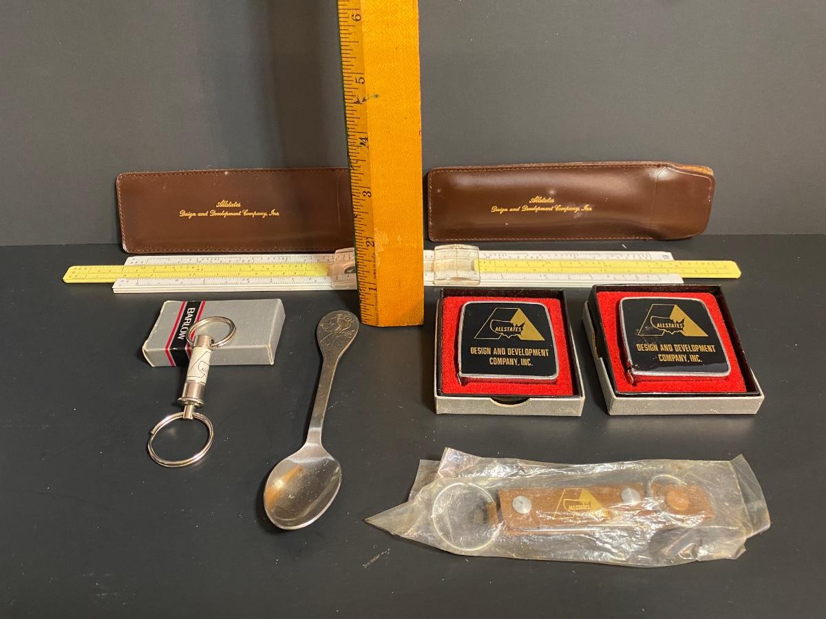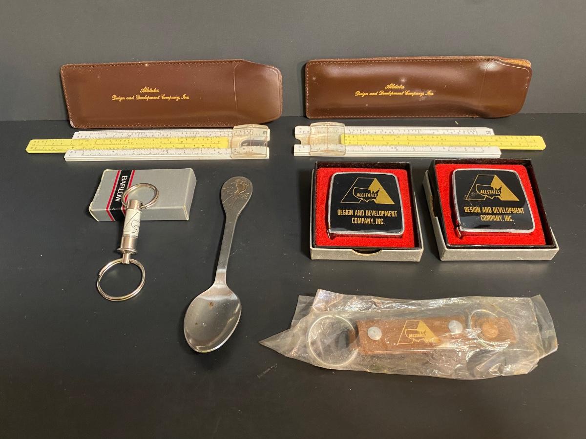 Vintage company advertising collection: ruler, tape measures, key chain & more