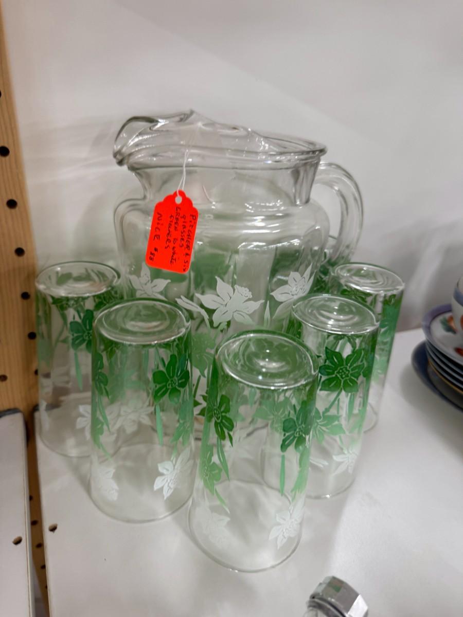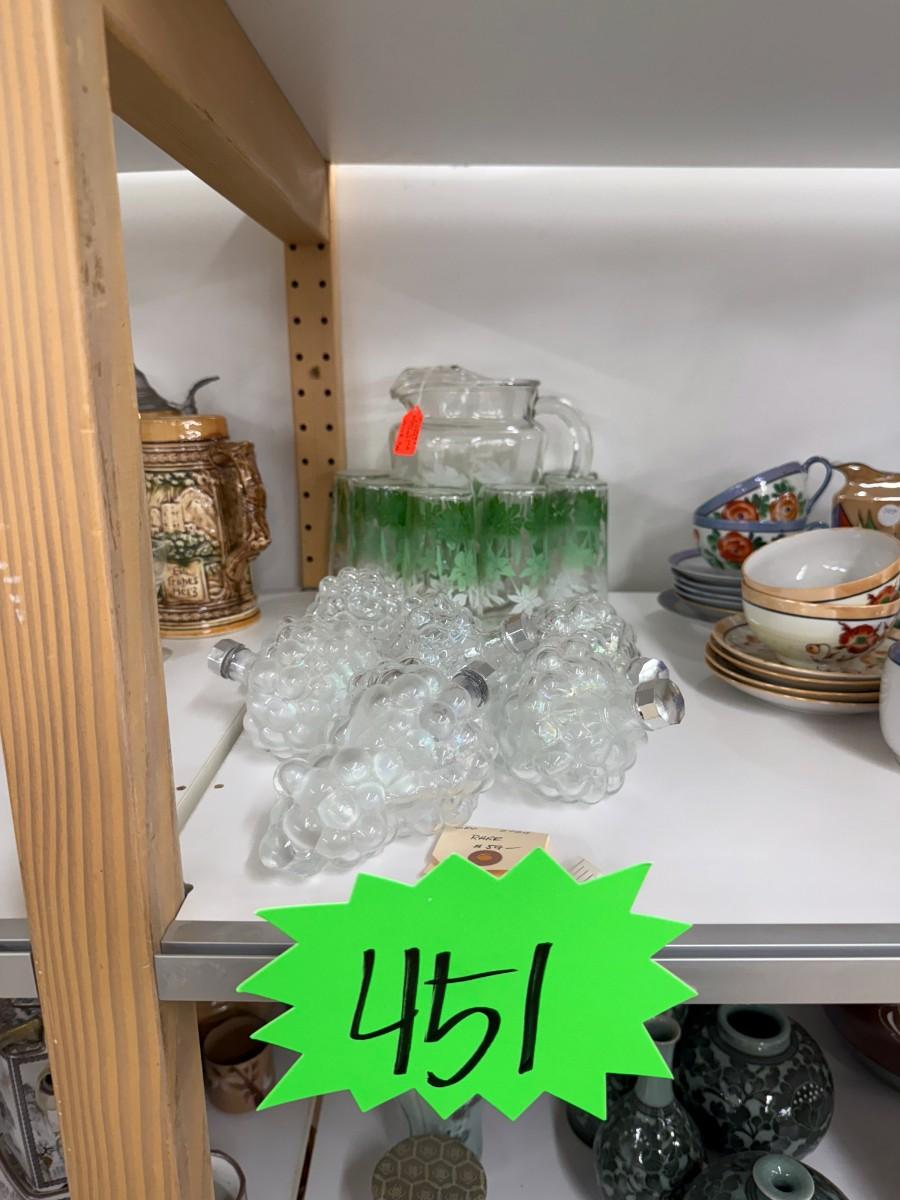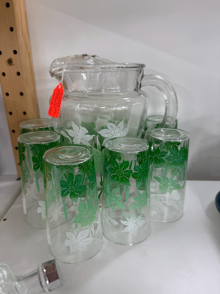 Iridescent grape glasses, green pitcher and glass set