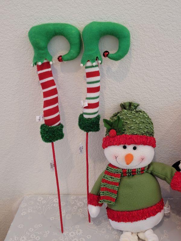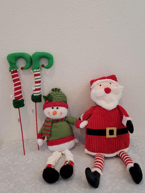 Lot 452: New Santa and Snowman Sitting Deco and Elf Legs