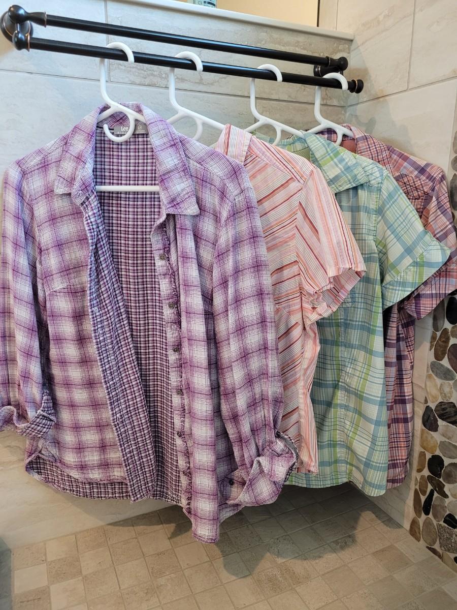 Lot 452: Ladies Button Down Plaid Shirts (4)