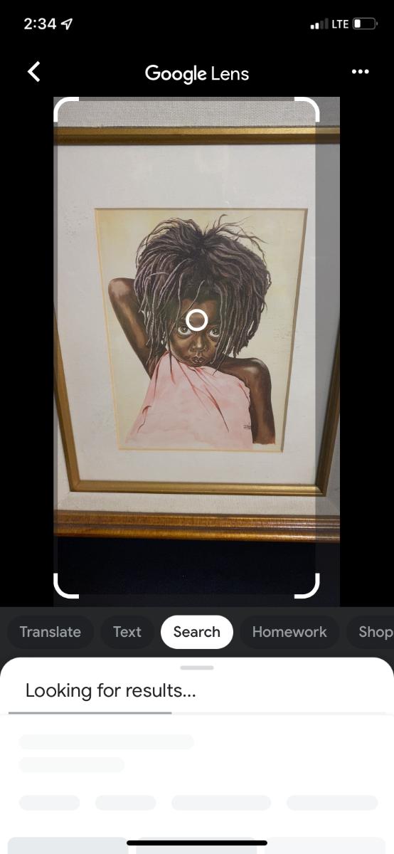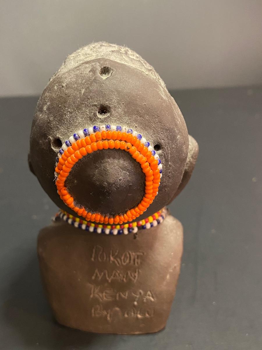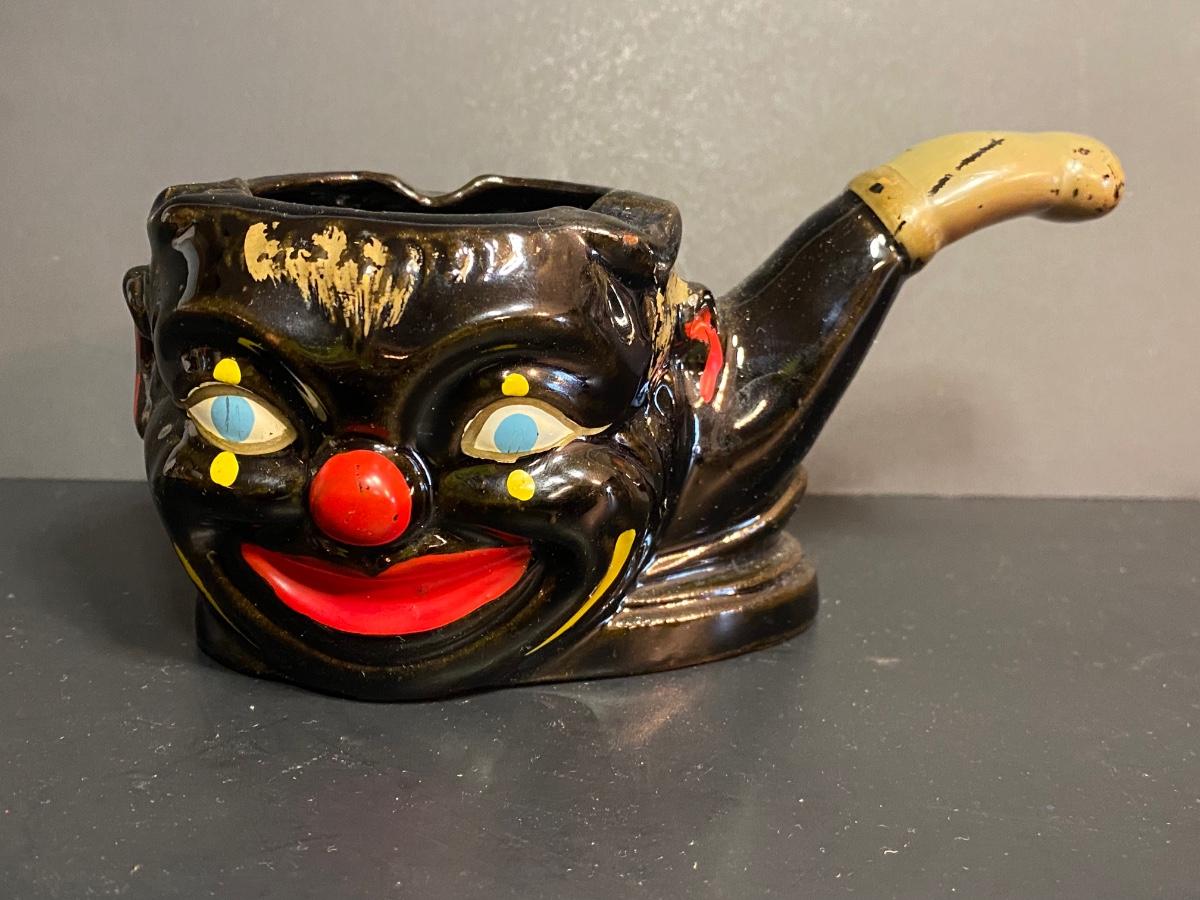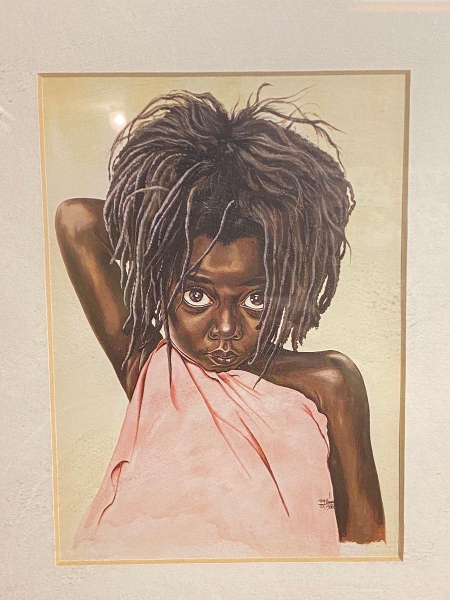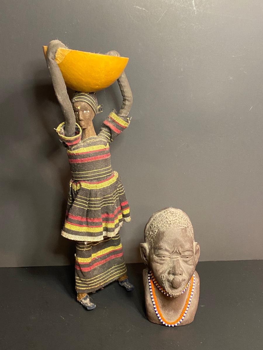 Southern folk art and more: framed print “Pretty Eyes” by Tom McKinney. signed sculpture for Kenya, vintage toothpick holder, ashtray and more
