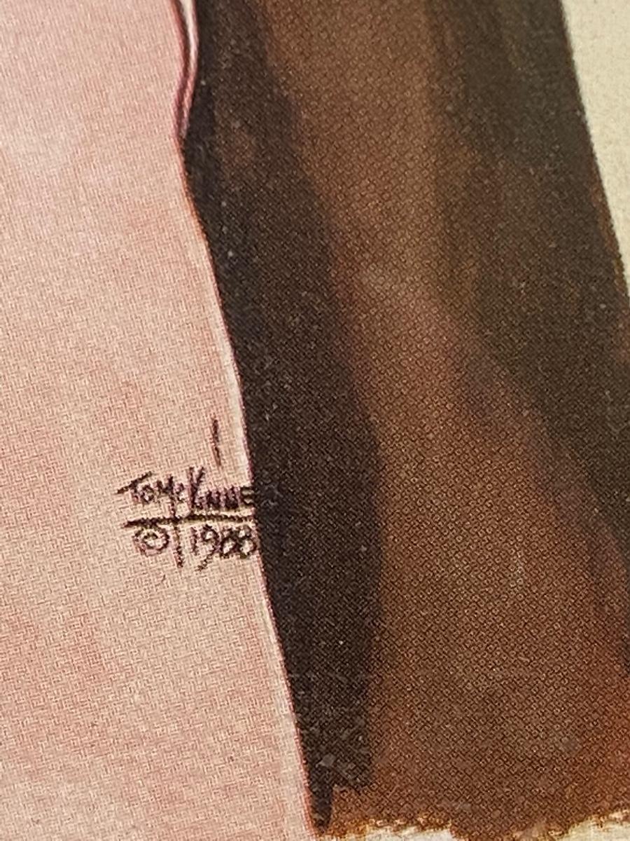 Lot 452:  Framed & Singed Art “Pretty  Eyes” by Tom McKinney, Signed Sculpture, Bells, Ashtray & More