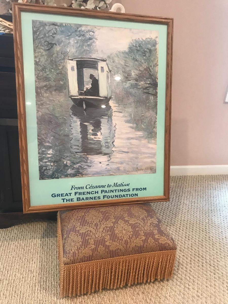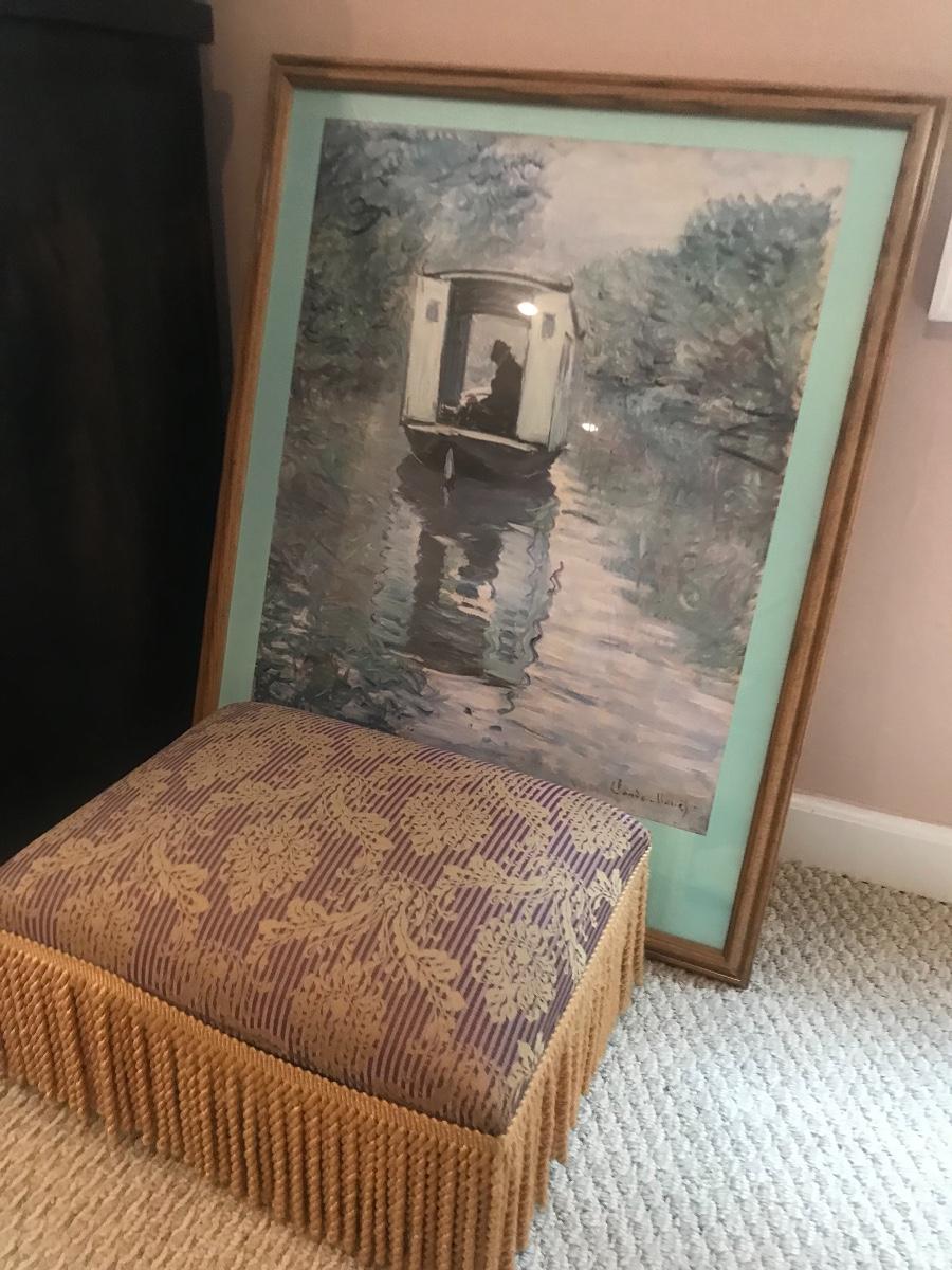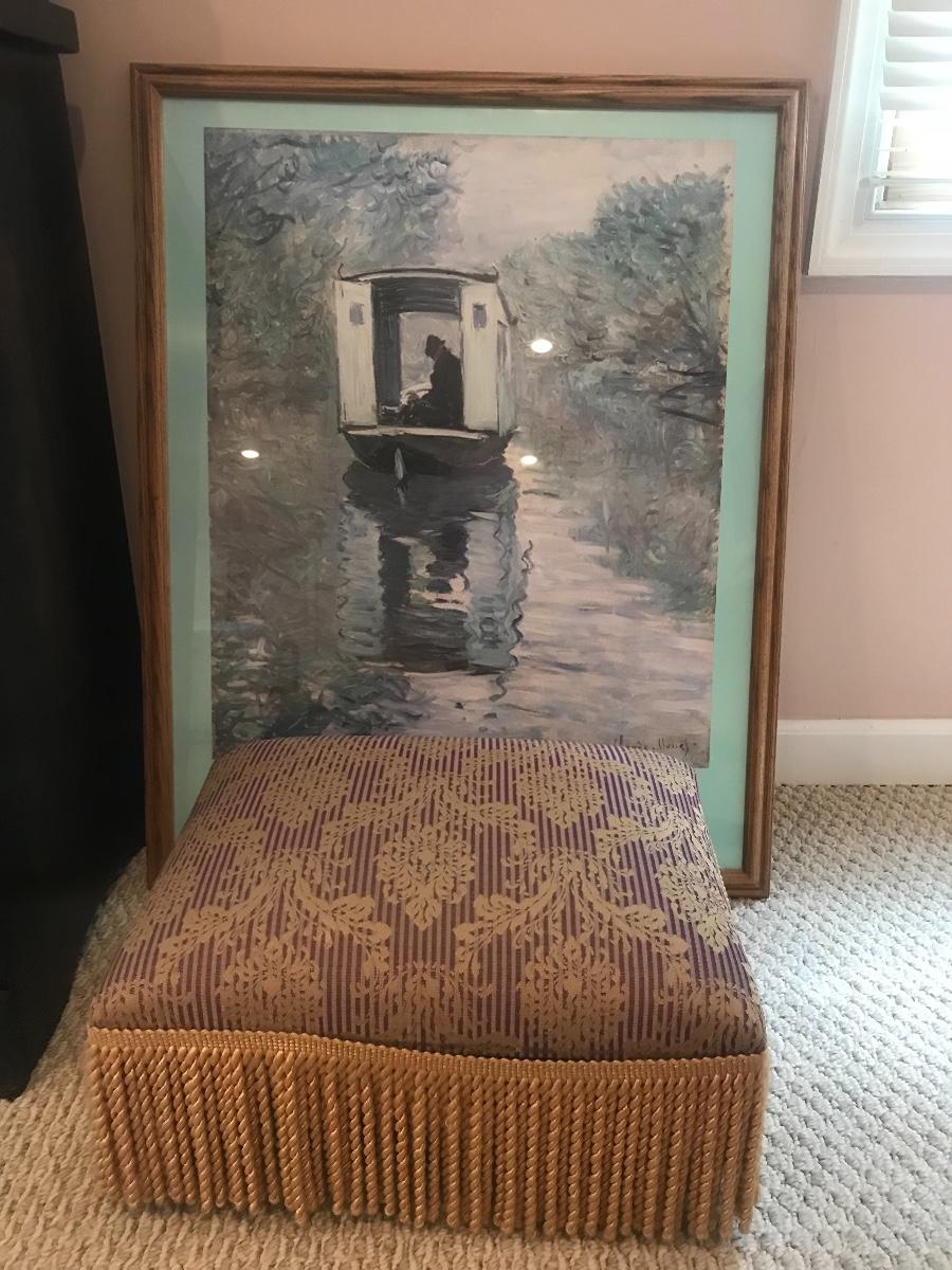 Framed print and a nicely reupholstered, vintage stool. Please see all pictures as they are the best representation of the items. The pictures show condition, measurements if taken, and what is included in the lot. Due to the large amount that we photograph and the time frame, we are not always able to take measurements. All items unless noted, are pre-owned and have been used. If you purchased furniture, you must bring help. We do not allow one person to carry large furniture out on their own. Bring help, tools and a truck for the safety of our client’s homes, and your personal safety. Company policy. Thank you.