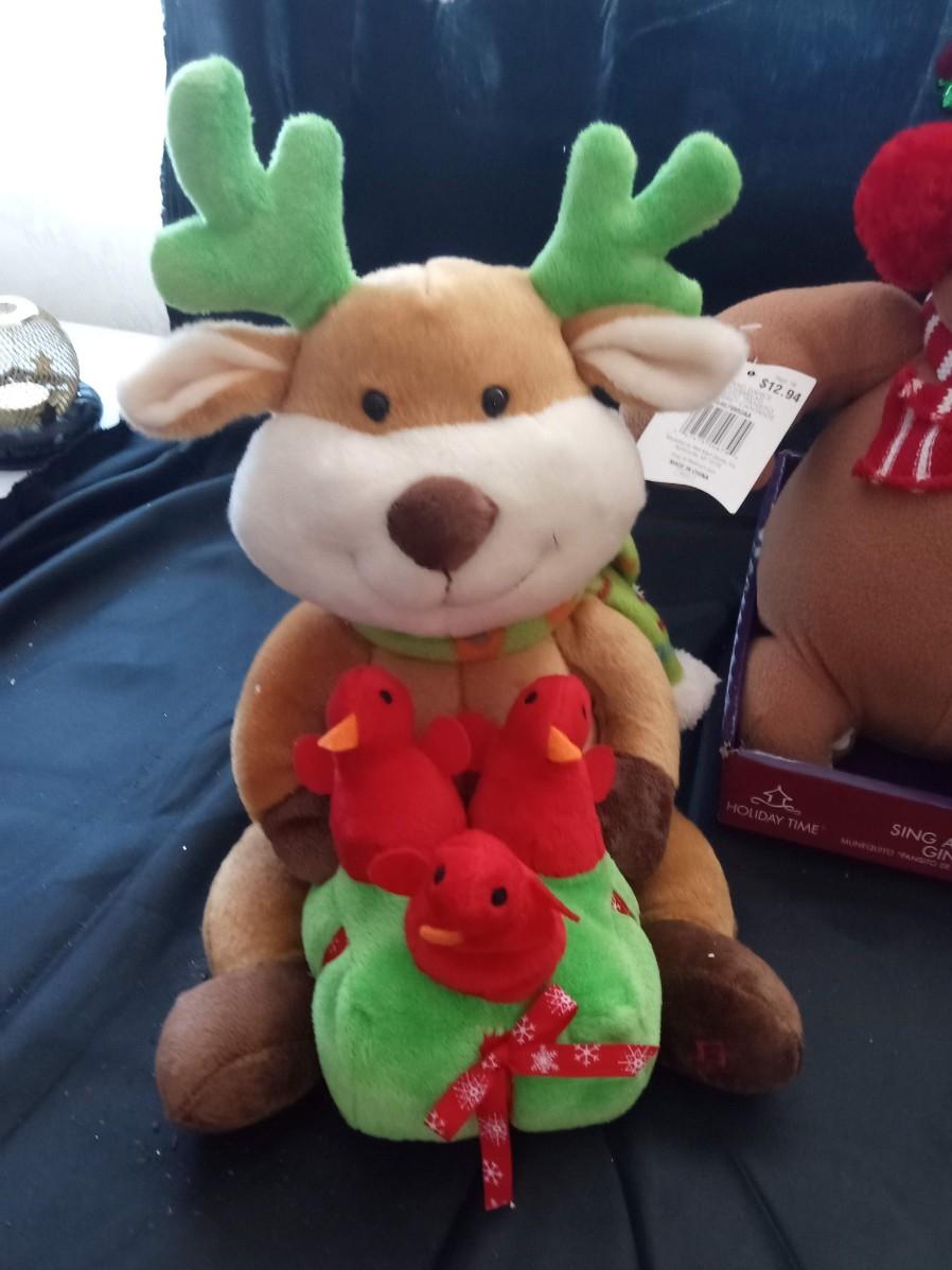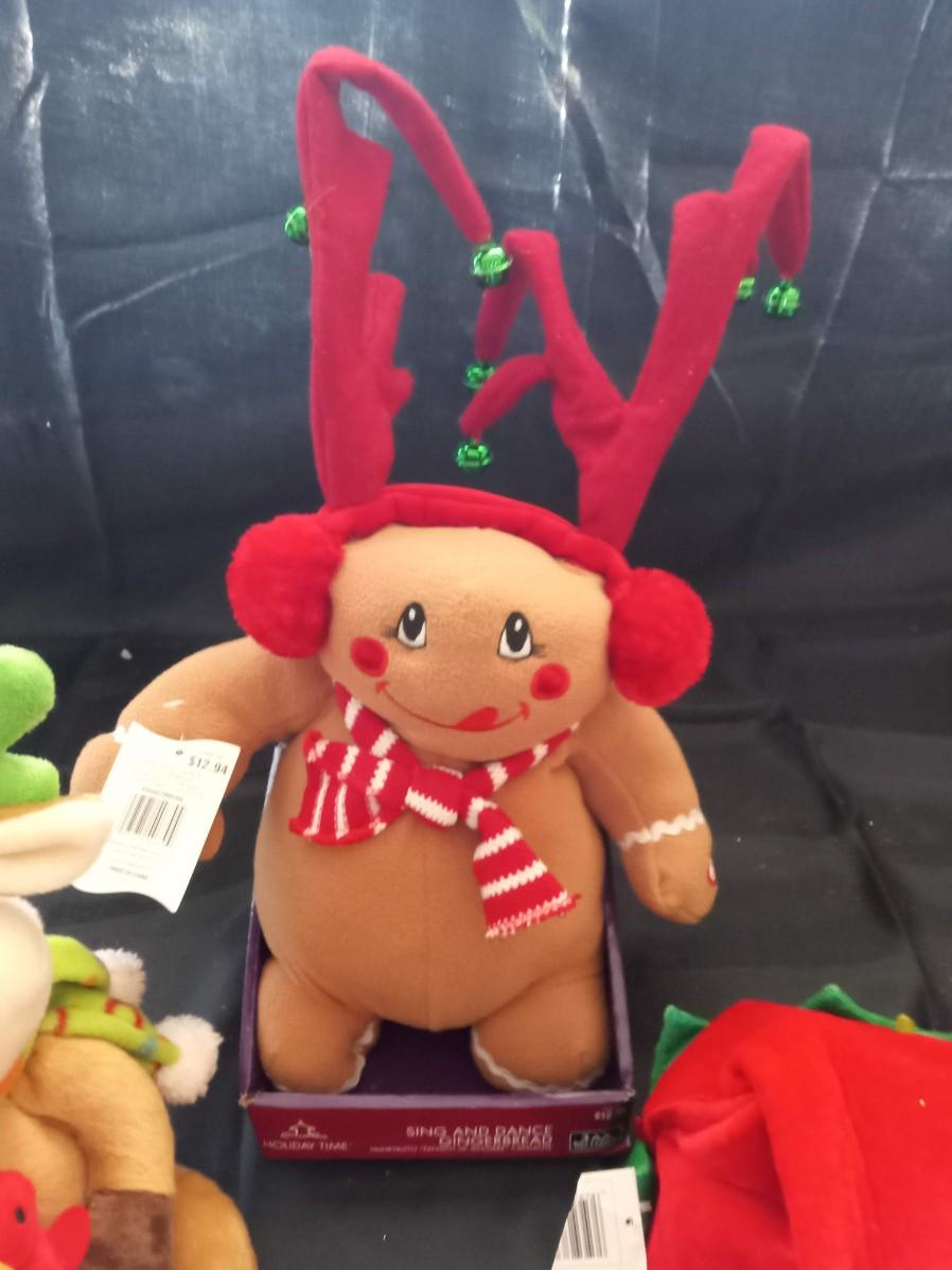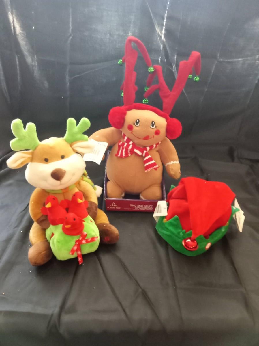 LOT 453  THREE ANIMATED/MUSICAL PLUSH HOLIDAY ANIMALS AND SANTA HAT
