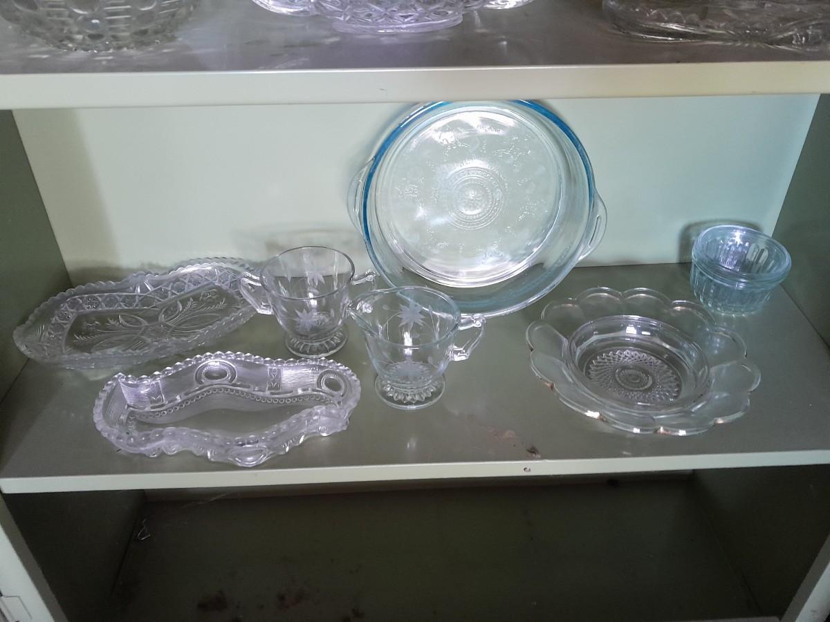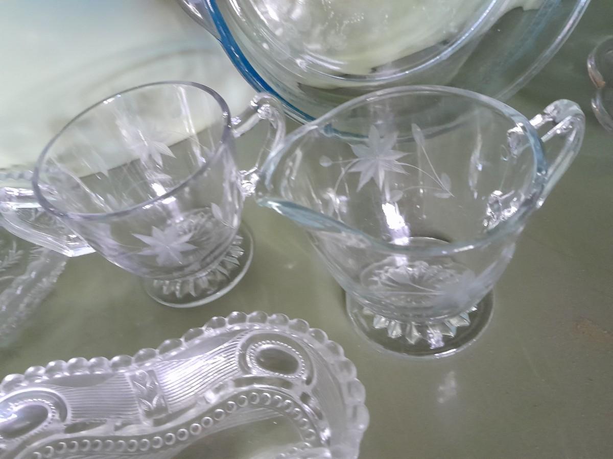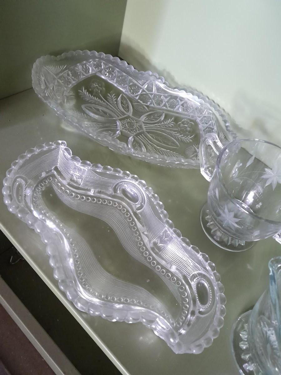 LOT 454 PRESSED GLASS AND ETCHED DISHWARE