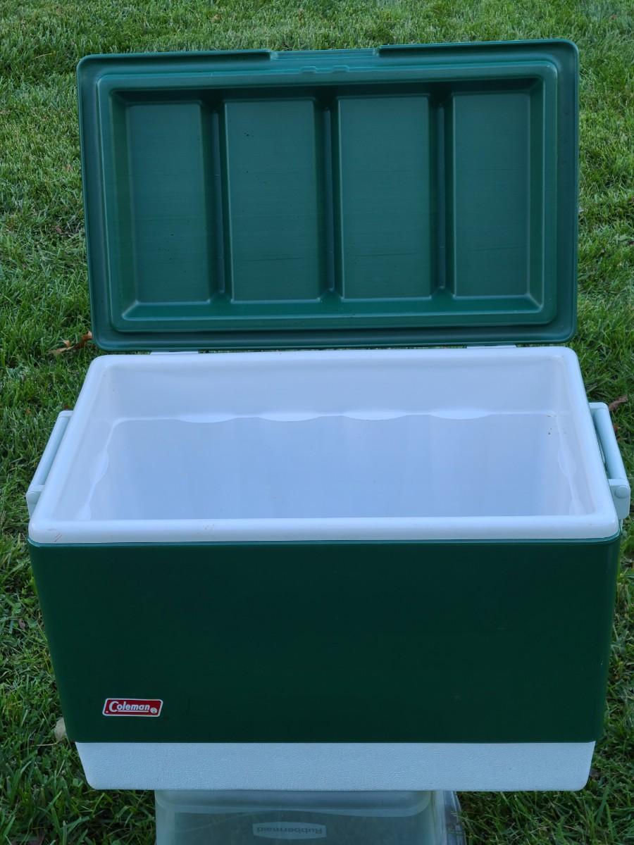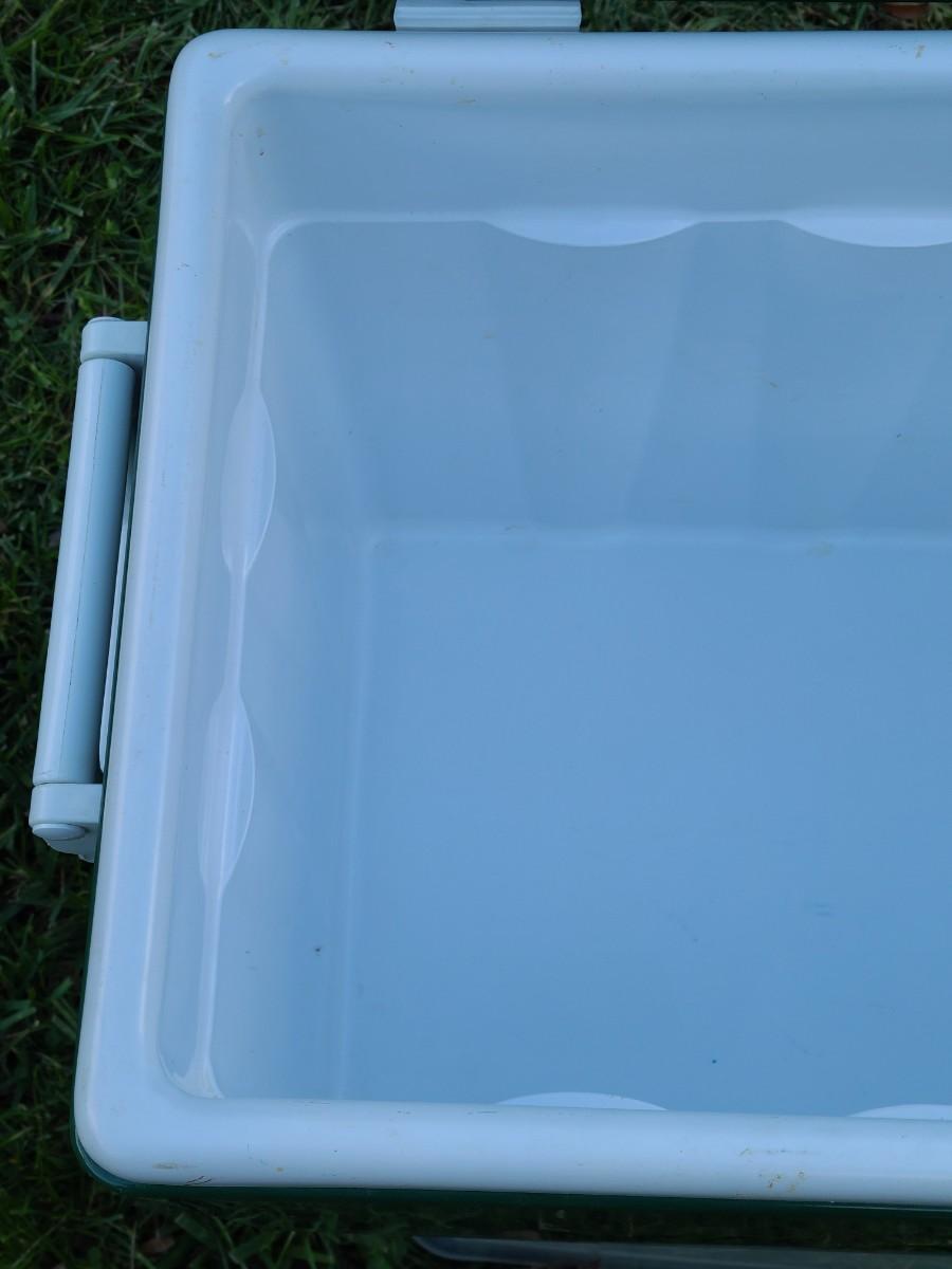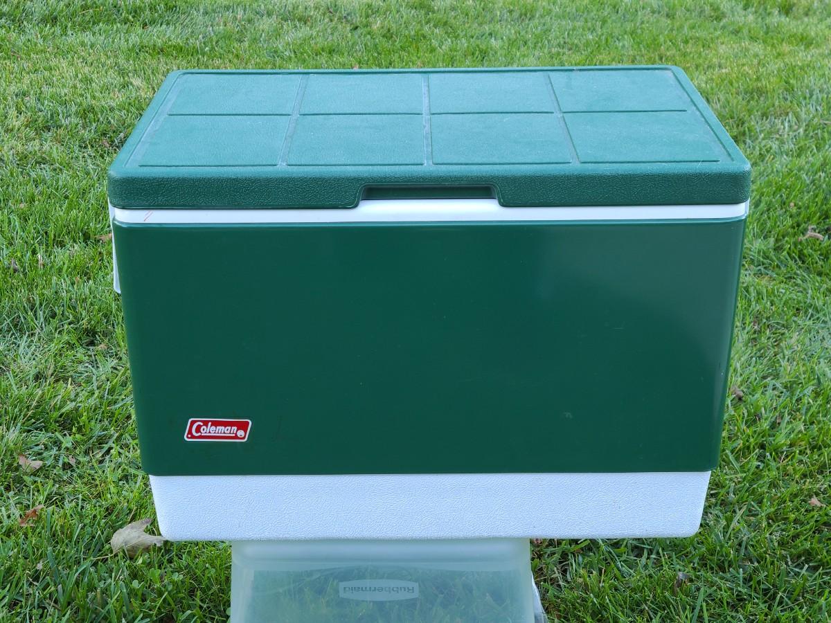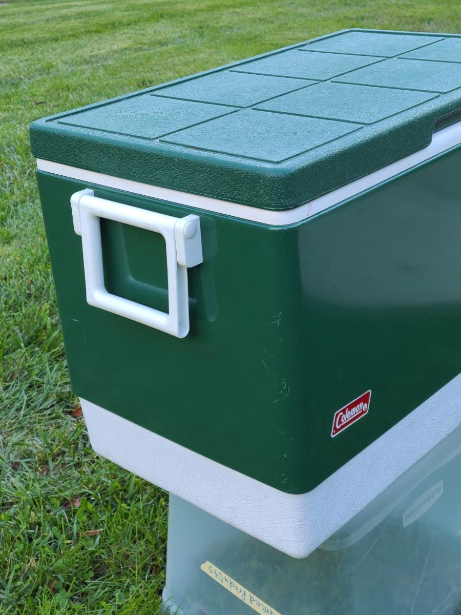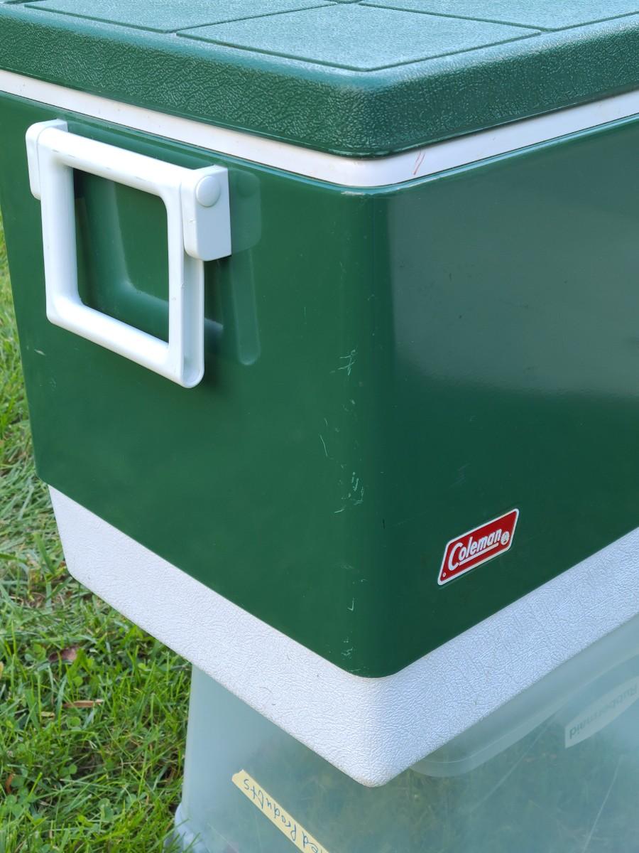 Nice vintage plastic and metal Coleman cooler! Sturdy and ready for its next adventure.