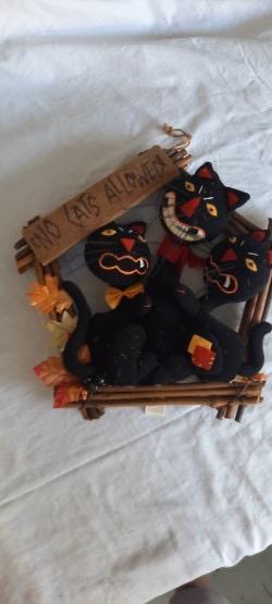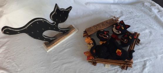 Lot 455 Halloween Wooden Cat and Hanging Cat Decor