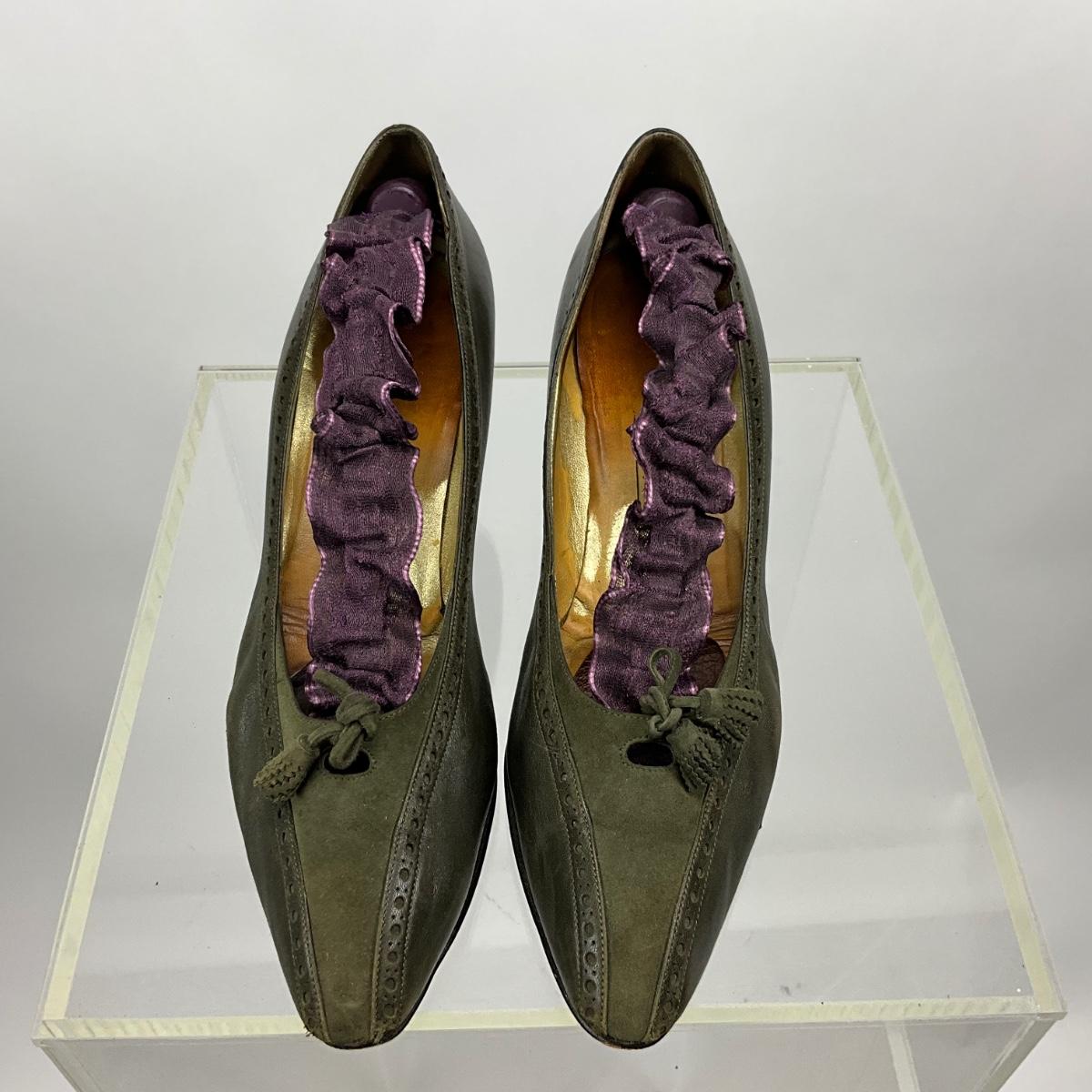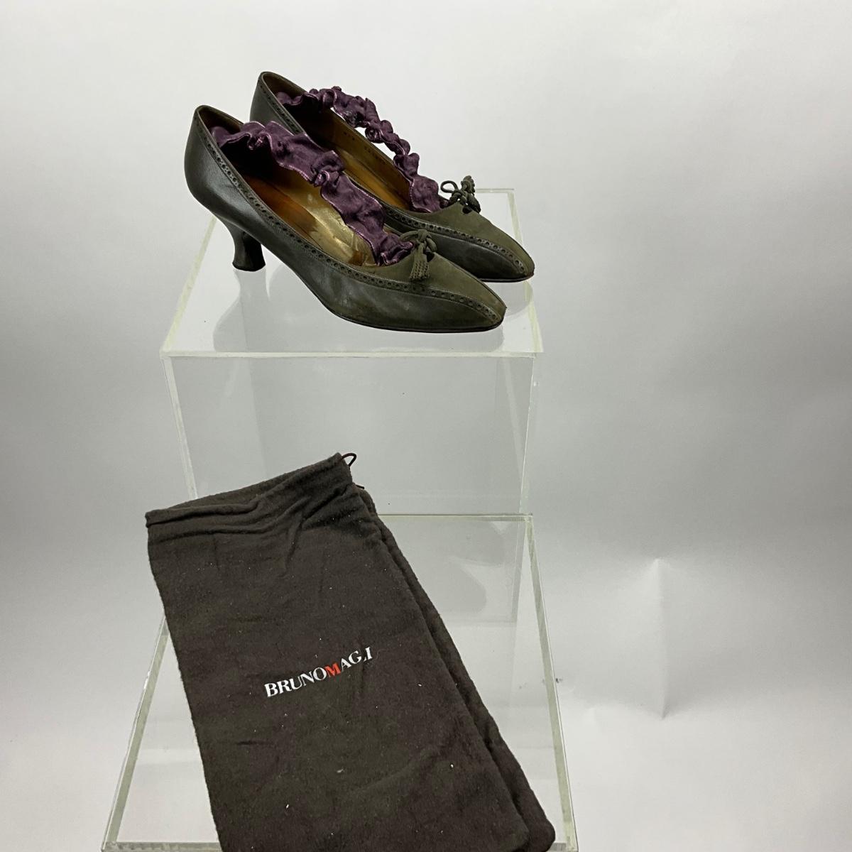 Lot 455. Bruno Magli, Green Leather Heels Size 10B w/ Dust Bag