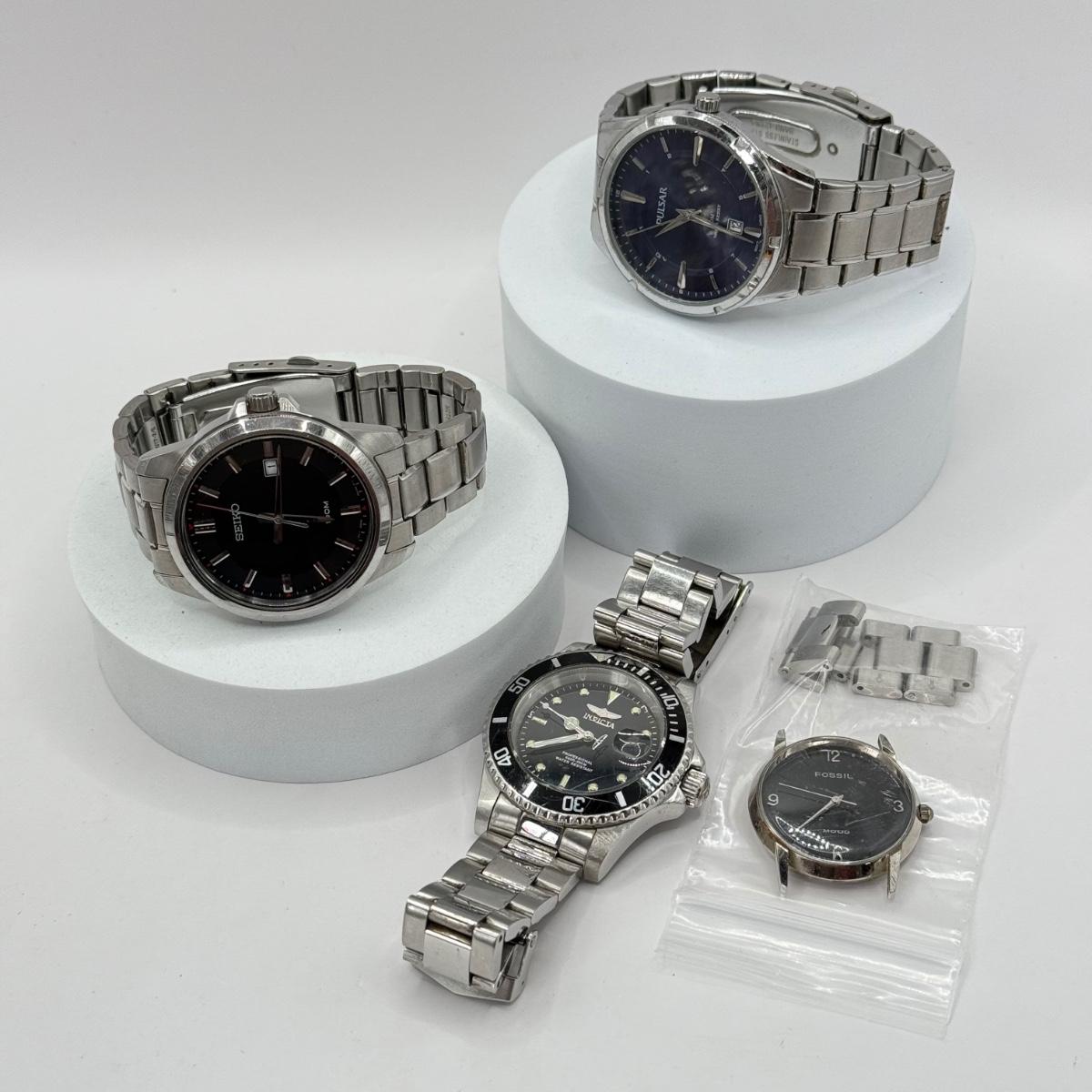 LOT 456J: Fossil Mood Watch Face w/ Men’s Watches: Seiko, Pulsar & Invicta