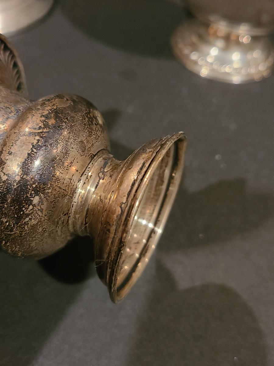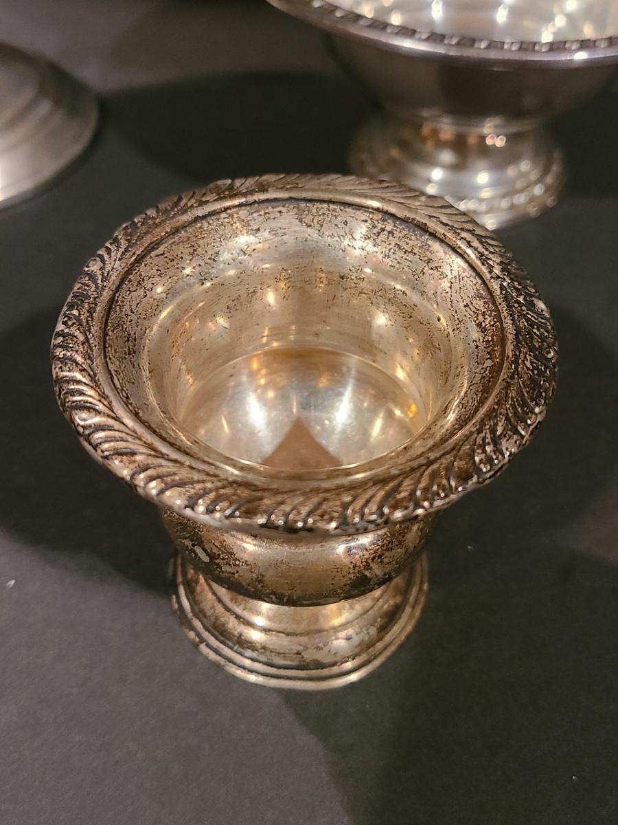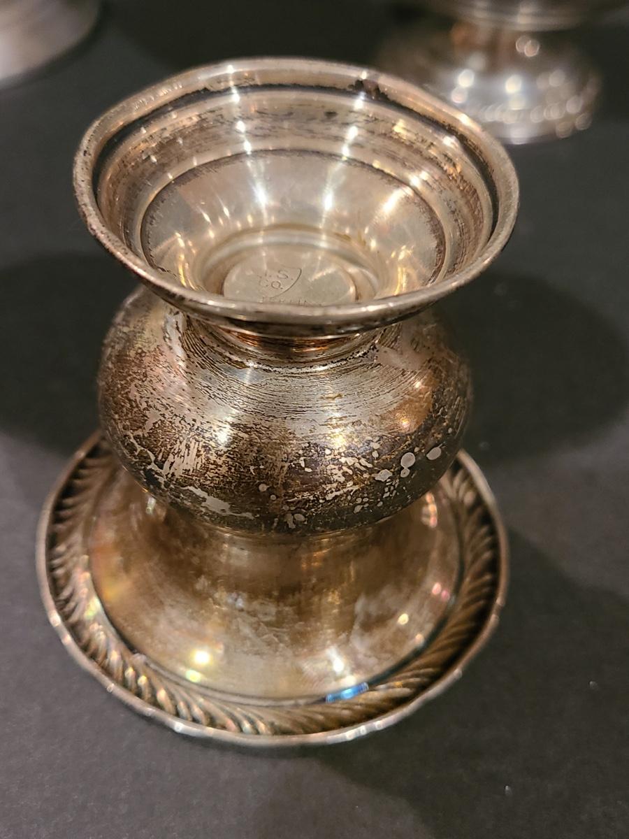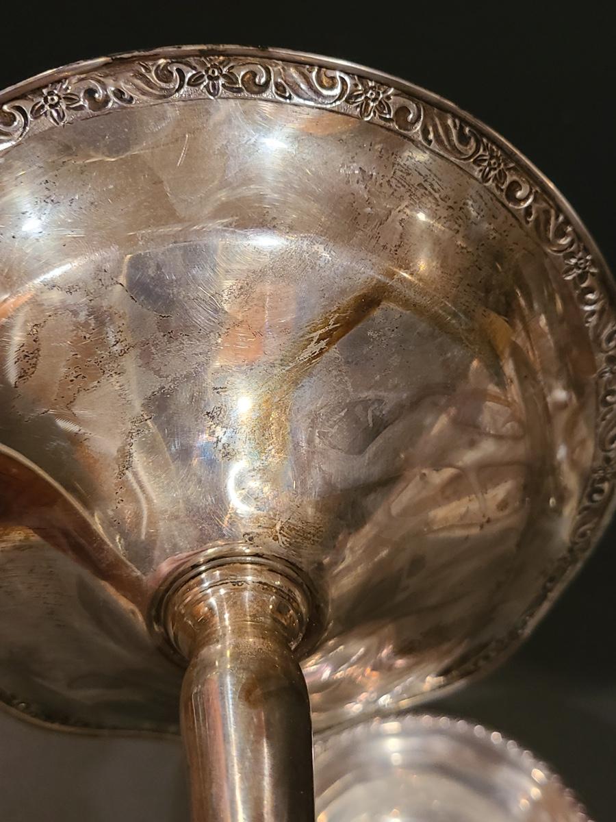 One pound, one ounce of sterling with two having weighted bases. All of these pieces are marked sterling, but they all have condition issues. Please see all pictures. The pictures show condition, measurements if taken, and what is included in the lot. Due to the large amount that we photograph and the time frame, we are not always able to take measurements. All items unless noted, are pre-owned and have been used. If you purchased furniture, you must bring help. We do not allow one person to carry large furniture out on their own. Bring help, tools and a truck for the safety of our client’s homes, and your personal safety. Company policy. Thank you