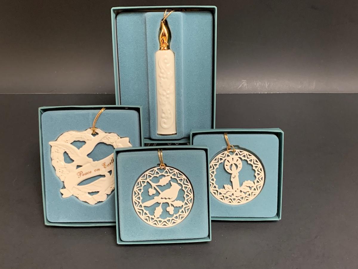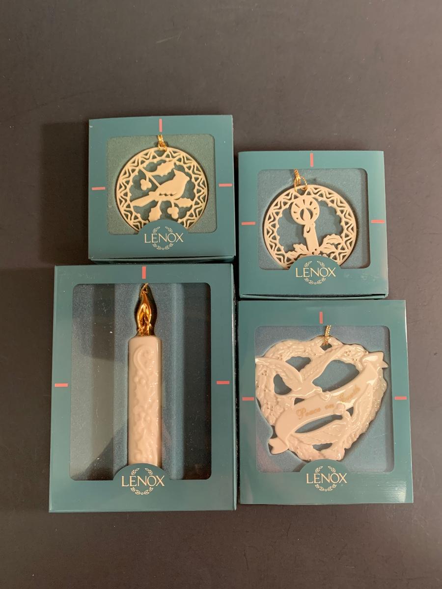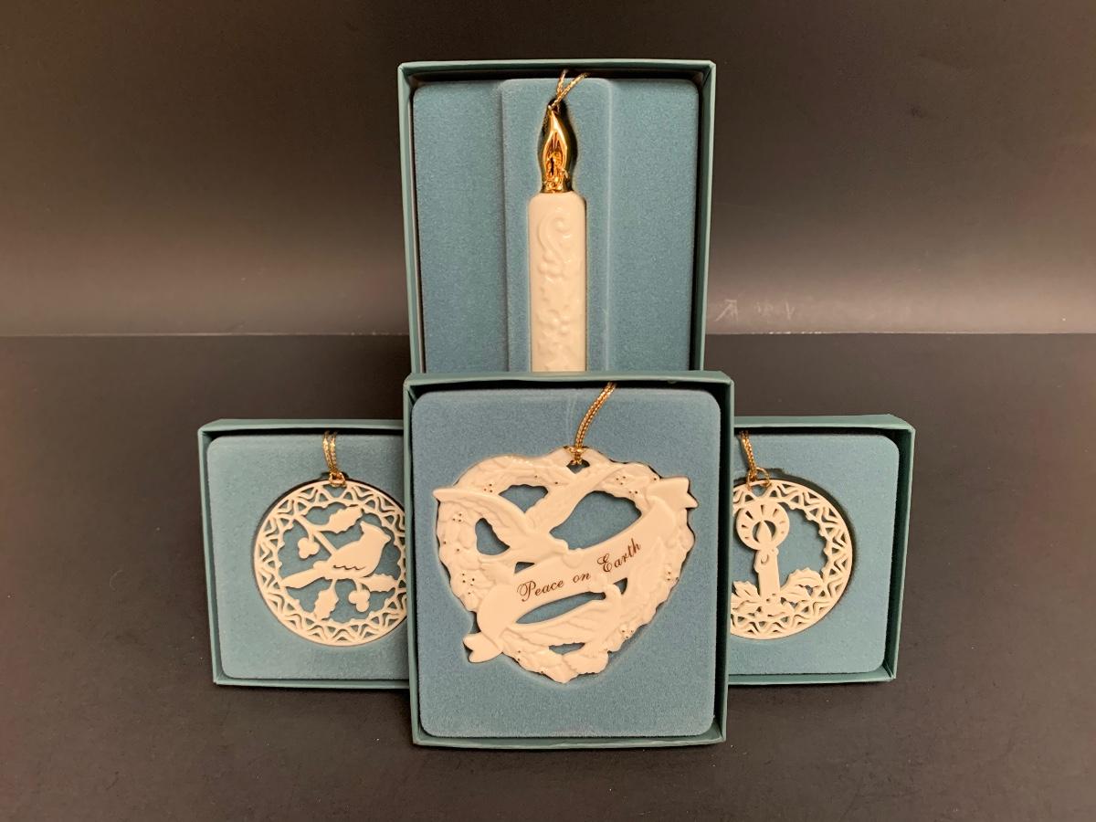 Set of 4 boxed vintage Lenox ornaments.