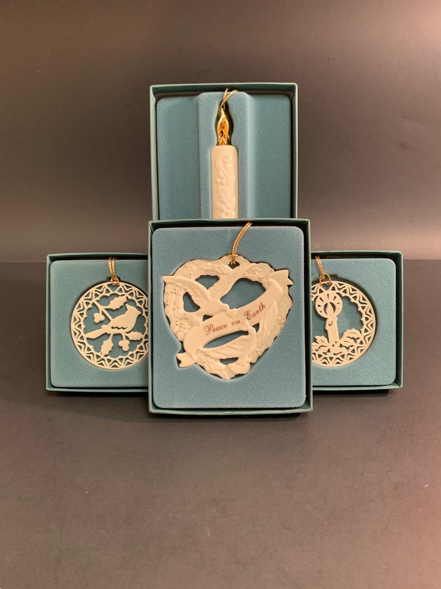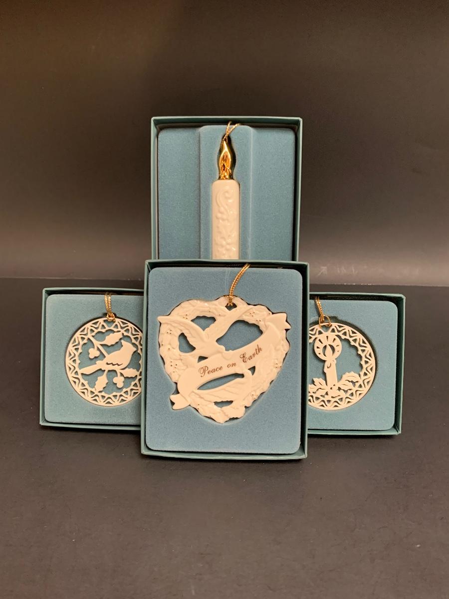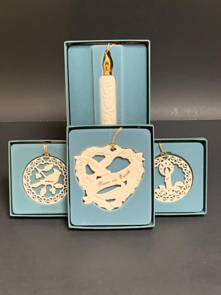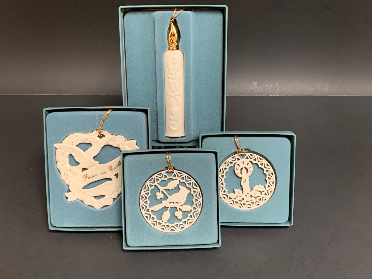 Set of 4 boxed vintage Lenox ornaments.