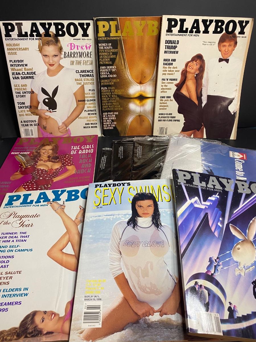 Vintage Playboys featuring Donald Trump and Drew Barrymore.