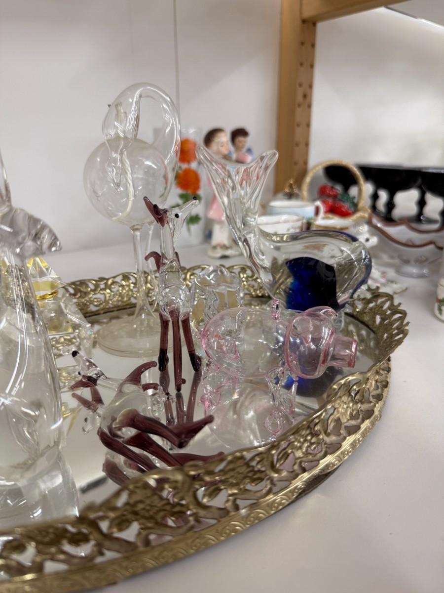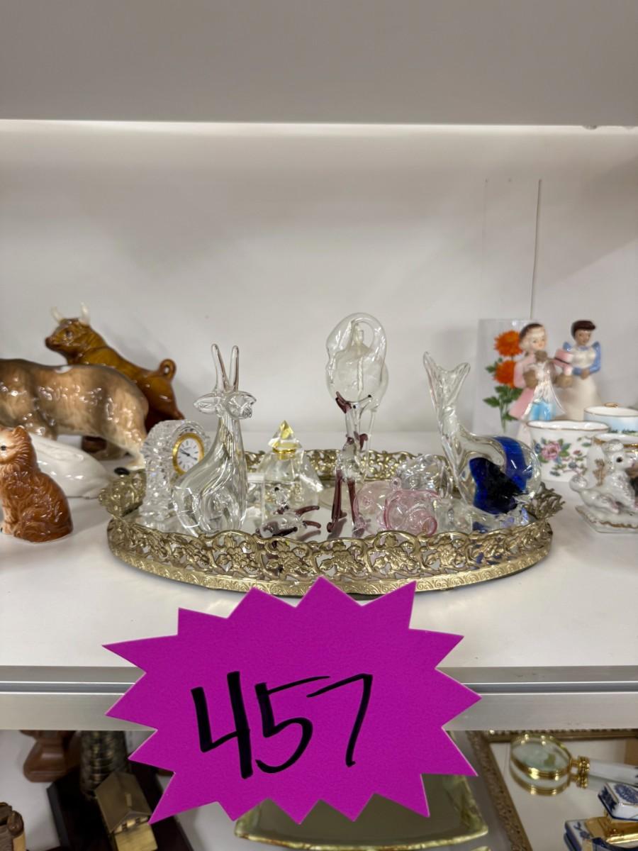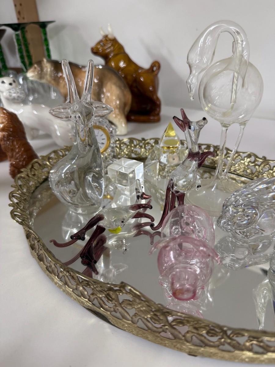 Lot 457 - Mirrored Tray, Glass Figurines