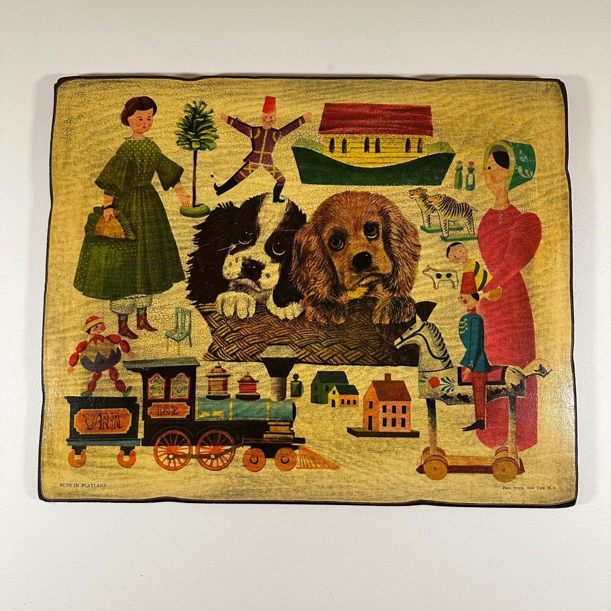 LOT 457Z: “Pups In Playland” Wooden Print by Penn Prints
