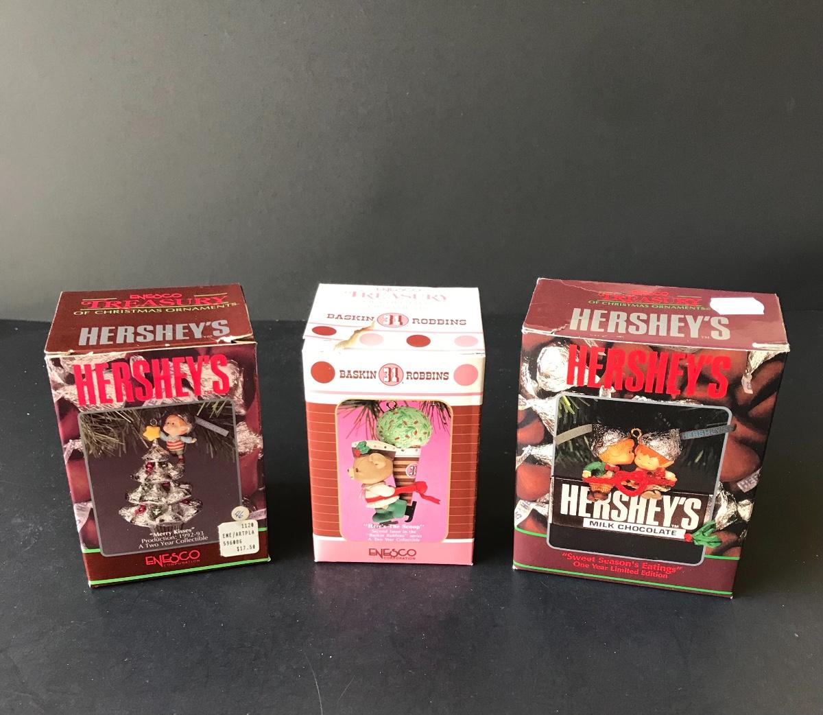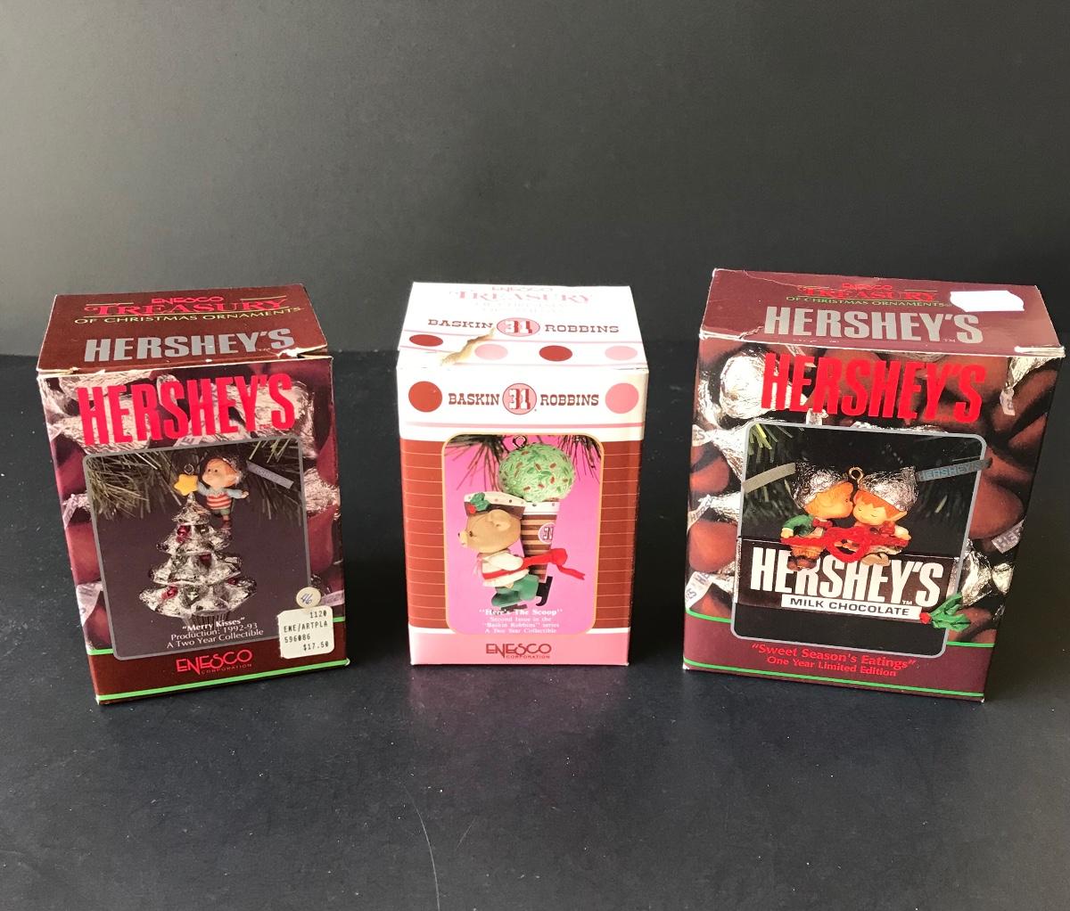 Lot 458: Vintage Hershey's & Baskin Robbins Christmas Ornaments By Enesco
