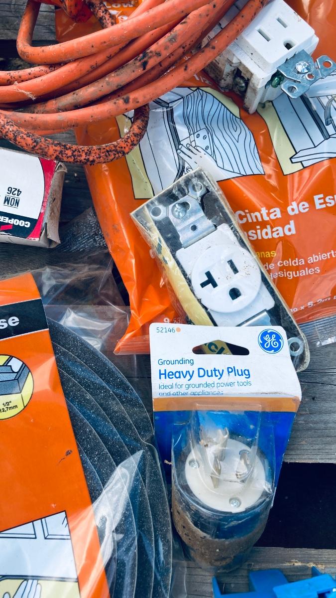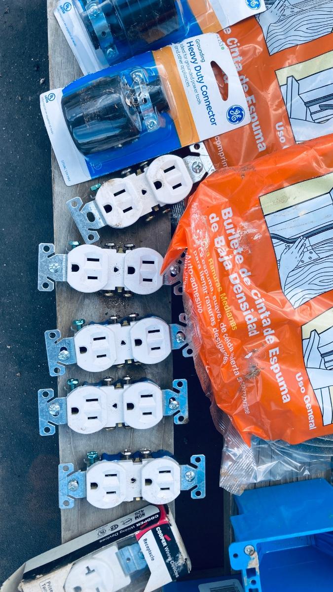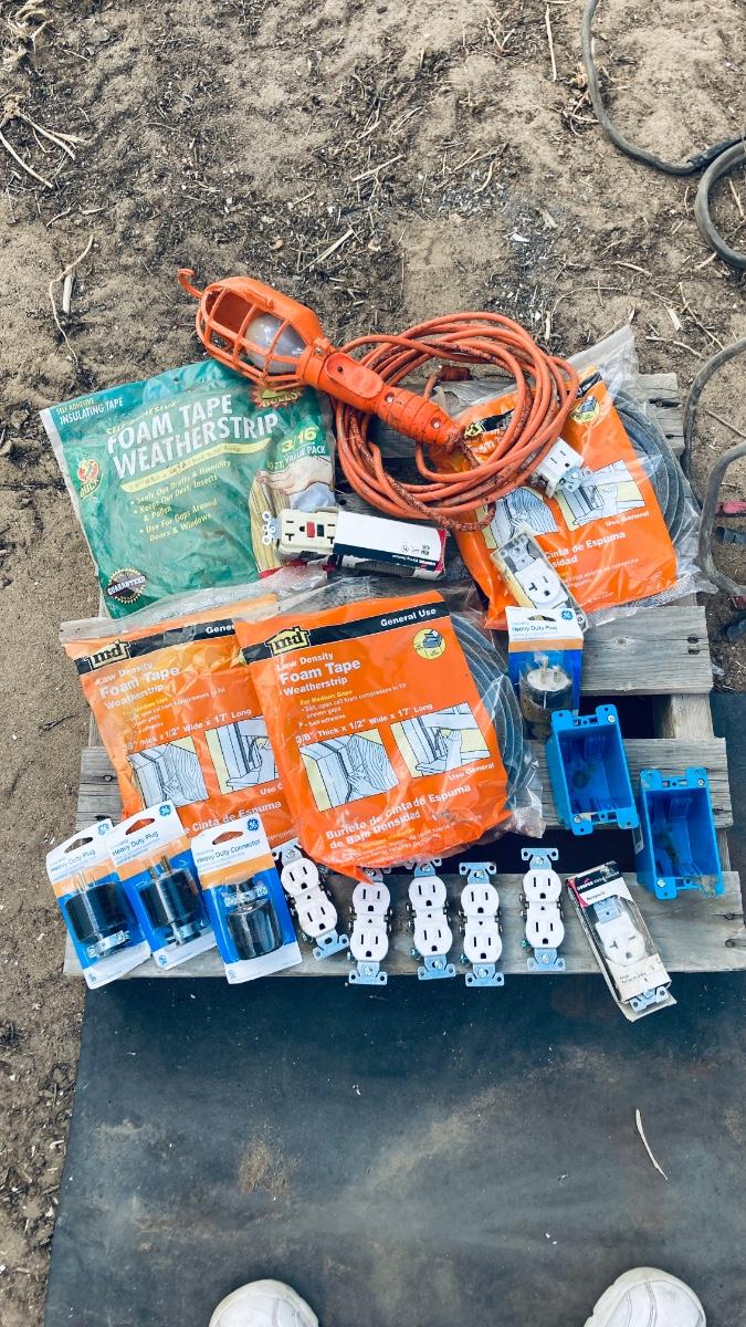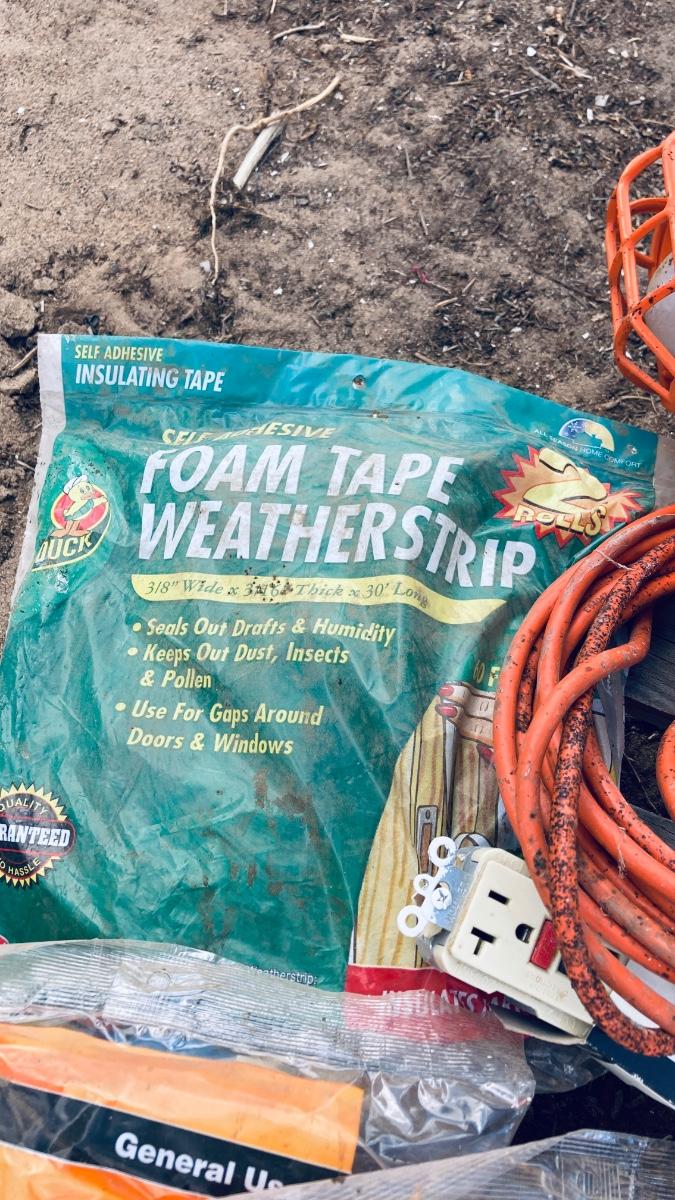 SEVERAL OTLETS, DIFFERENT SIZES OF WEATHER STRIPPING NEW IN BAGS, TREBLE LIGHT AND MORE