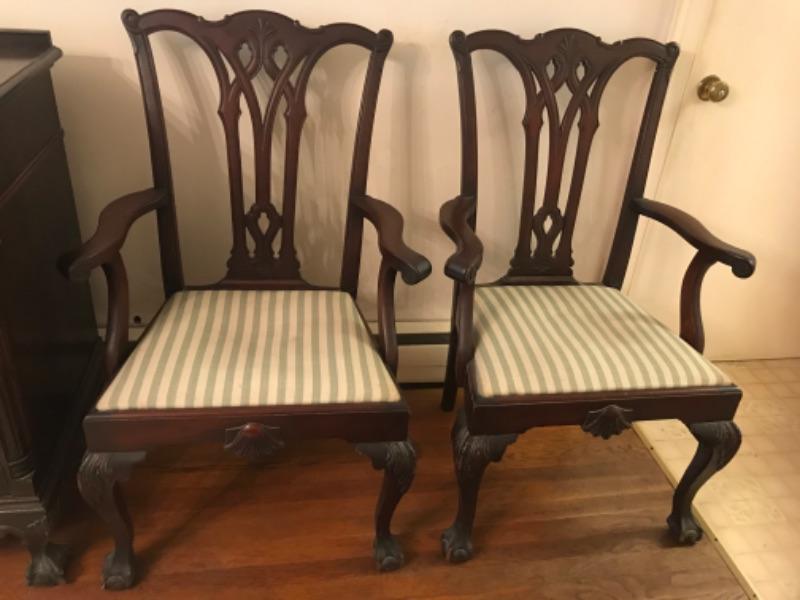 LOT # 458 Pair of Antique Philadelphia Style Chippendale Arm Chairs