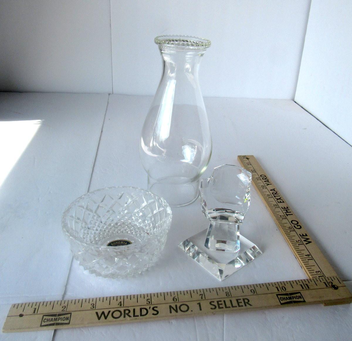 Lot 458: Lot of Glass: Bohemia Bowl, Chimney, Crystal Ball or Marble Holder