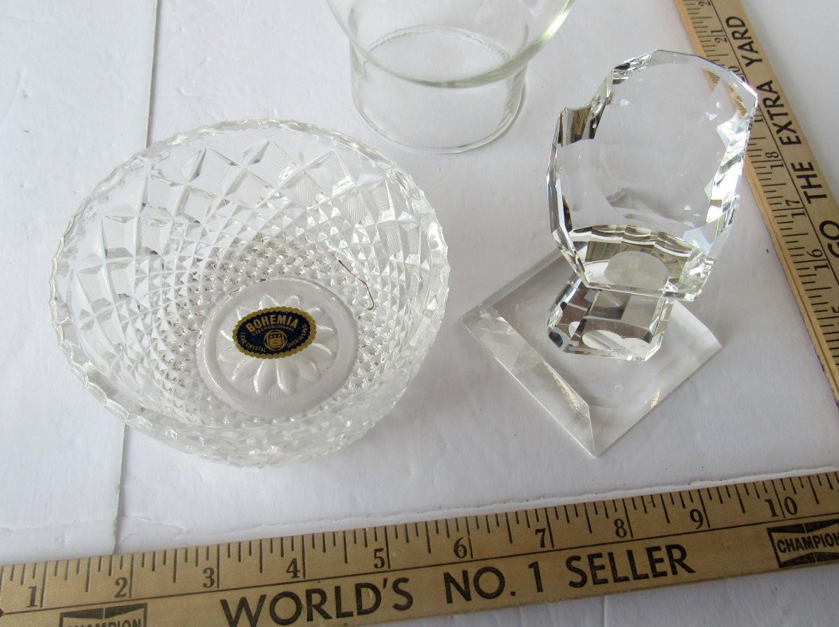 Lot 458:  Lot of Glass: Bohemia Bowl, Chimney, Crystal Ball or Marble Holder