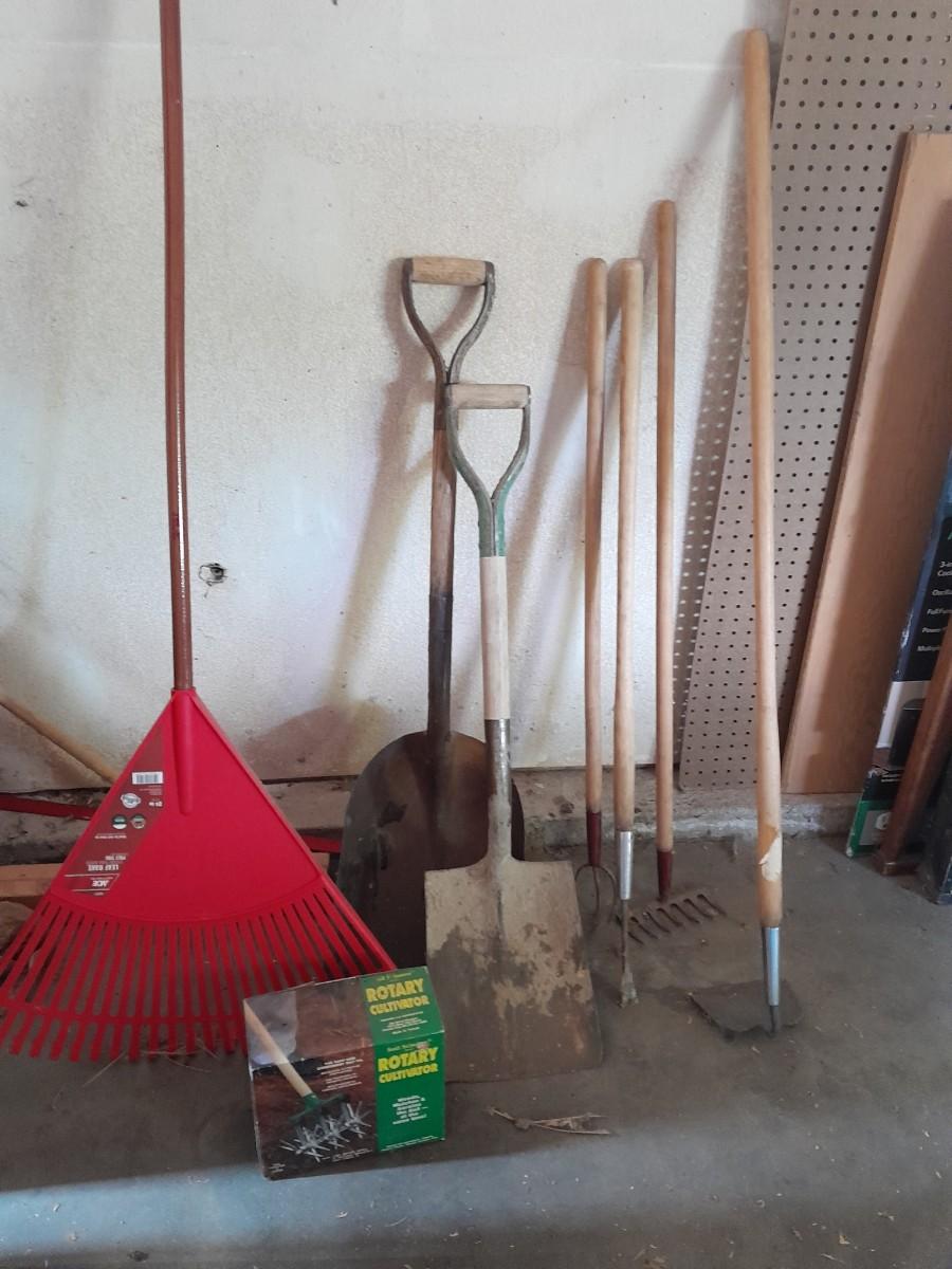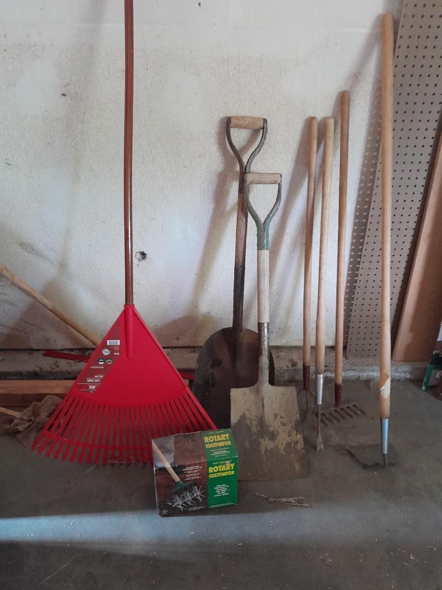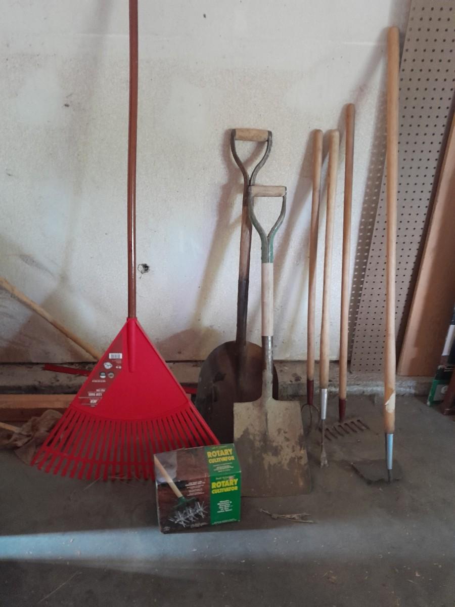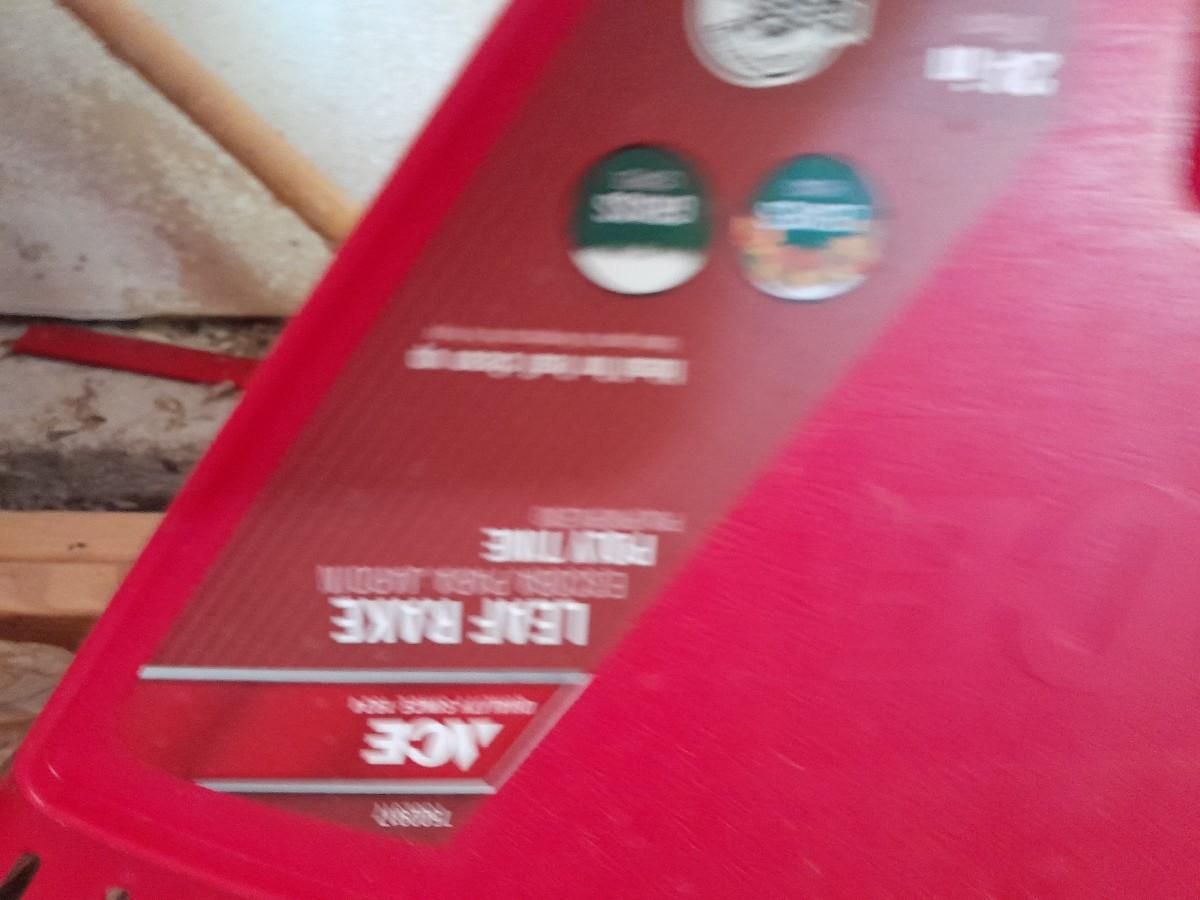 LOT 458 YARD AND GARDEN TOOLS NICE LARGE RED LEAF RAKE, FALL IS COMING!