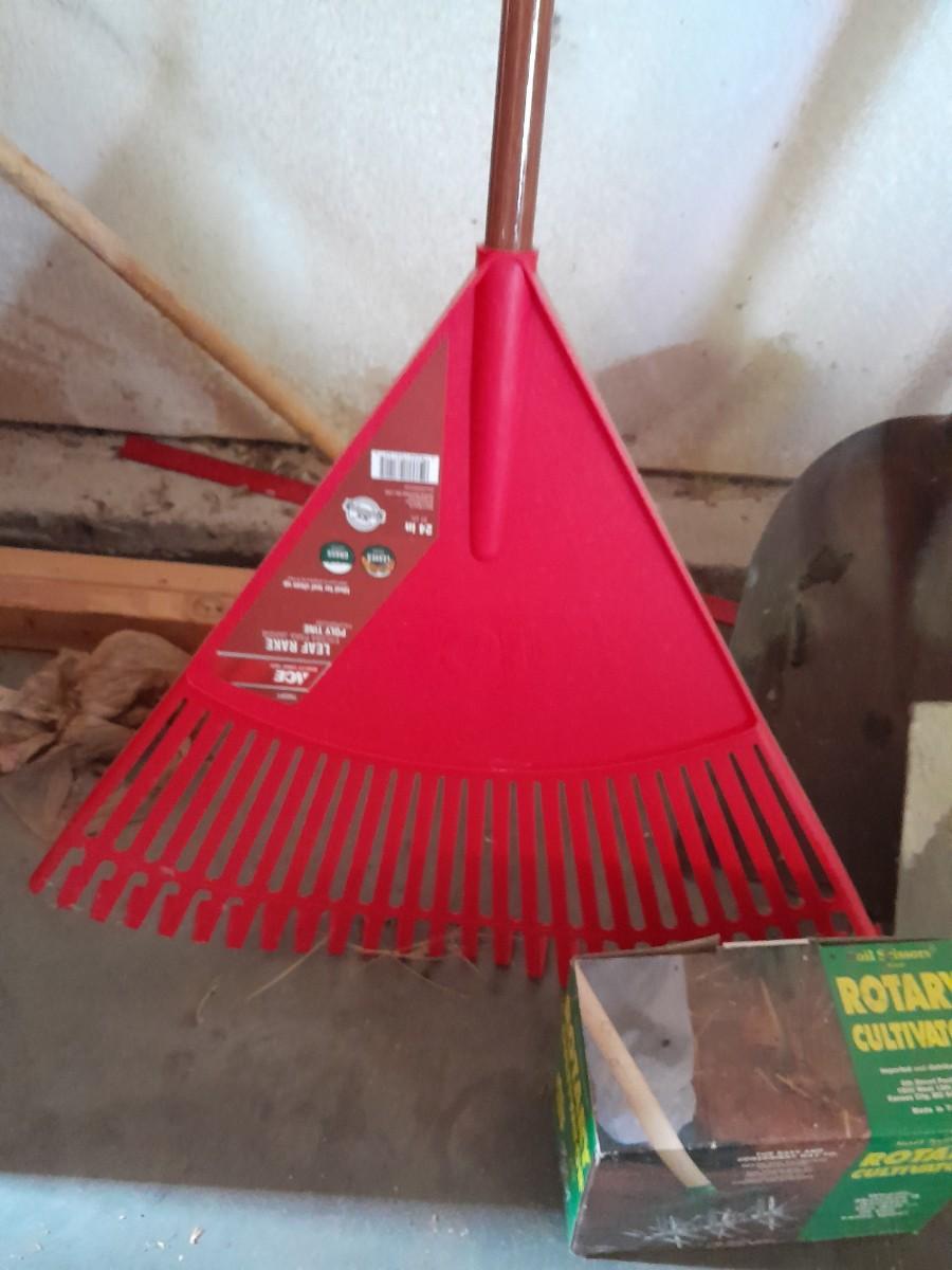 YARD AND GARDEN TOOLS NICE LARGE RED LEAF RAKE, FALL IS COMING!