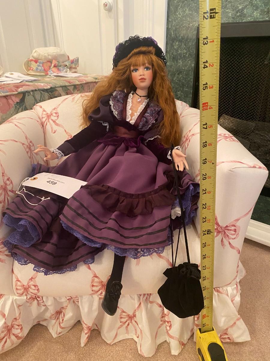 Doll Named "Camille" By Jan McLean Doll With Purple Dress with Hat and Purse