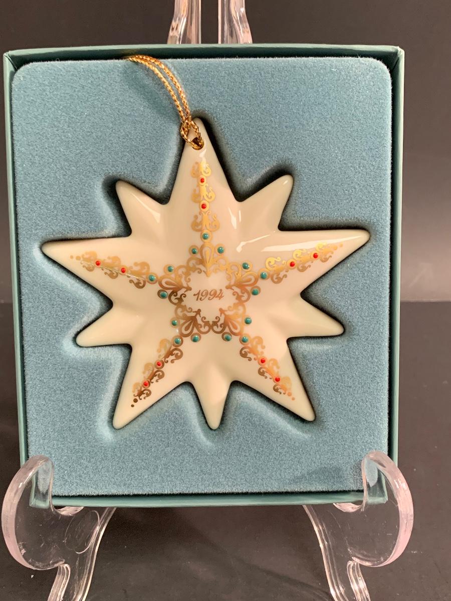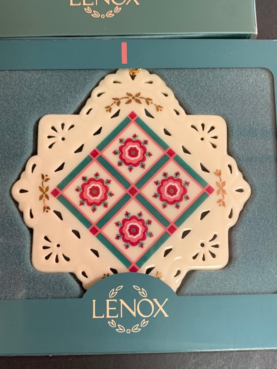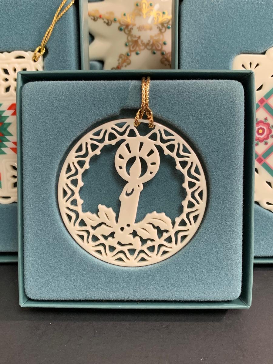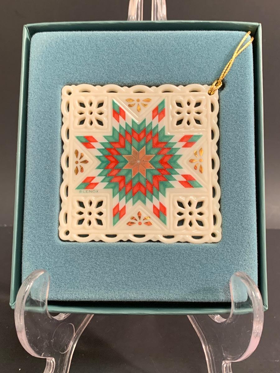 Lot 459 Vintage Lenox Ornaments: Quilt Squares, Star and Candle