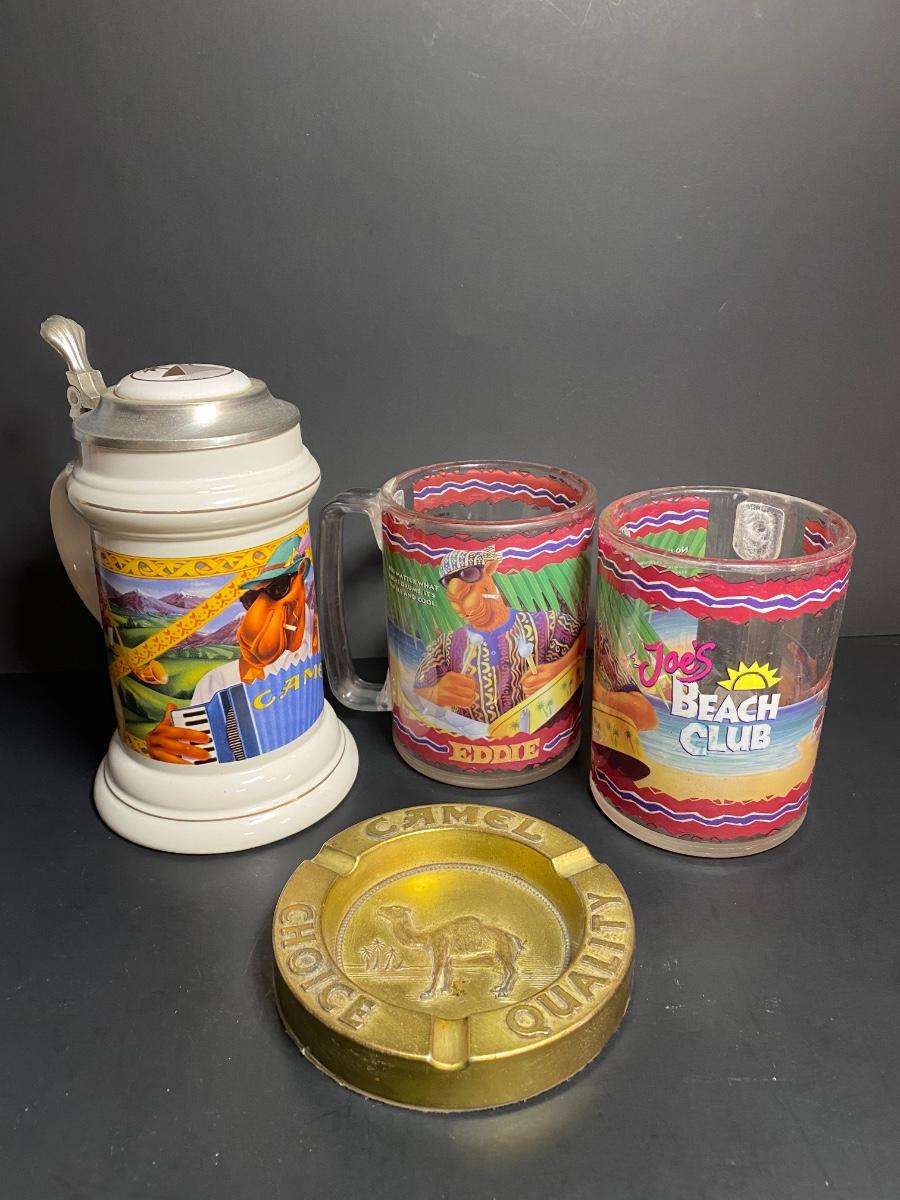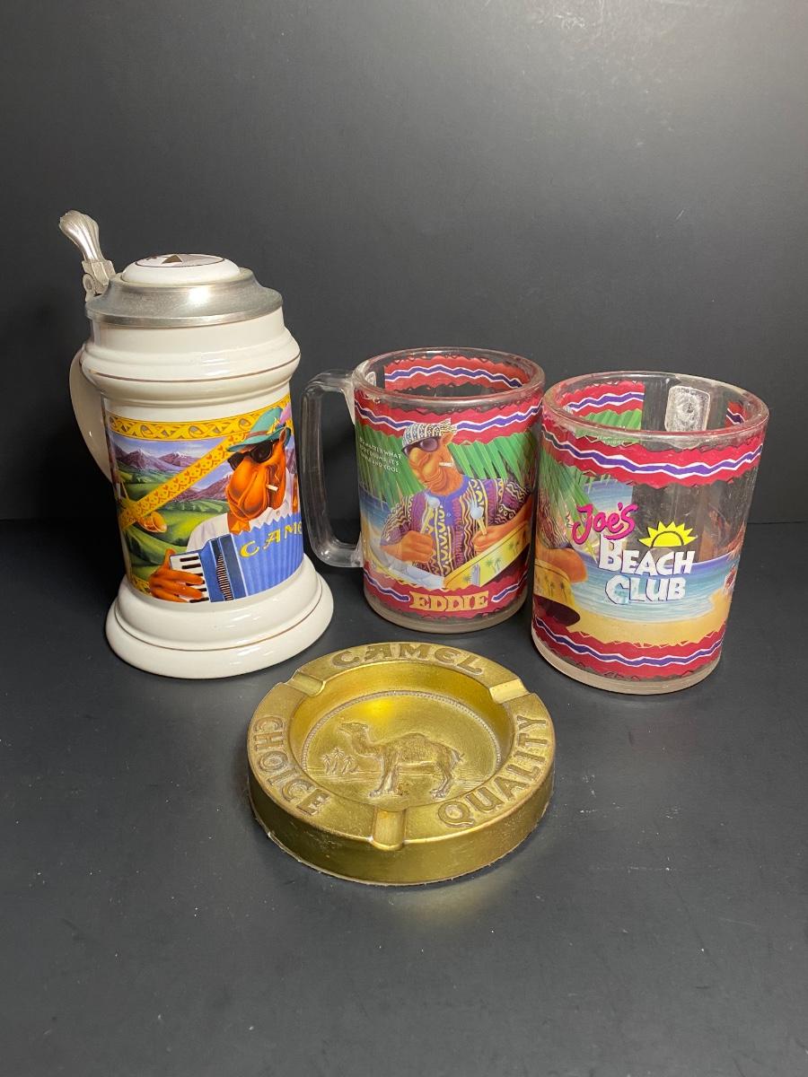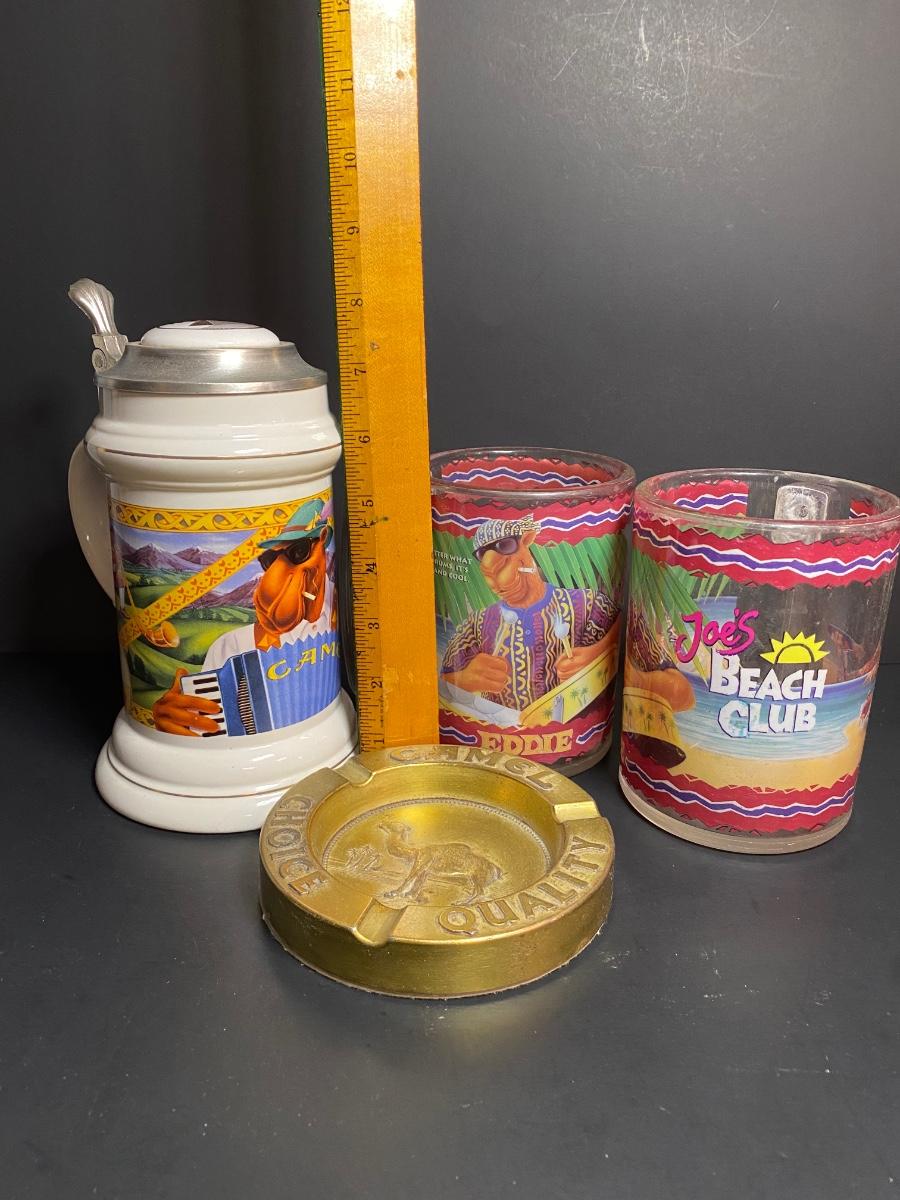 Camel collectors stein, two plastic cups and a brass ashtray. Please see all pictures as they are the best representation of the items. The pictures show condition, measurements if taken, and what is included in the lot. Due to the large amount that we photograph and the time frame, we are not always able to take measurements. All items unless noted, are pre-owned and have been used. If you purchased furniture, you must bring help. We do not allow one person to carry large furniture out on their own. Any damage to the walls, floors, or property is the buyers responsibility to fix, and the damage will be noted and you will charged for repairs, your bidding constitutes your understanding of these terms. Bring help, tools and a truck for the safety of our client’s homes, and your personal safety. Company policy. Thank you.