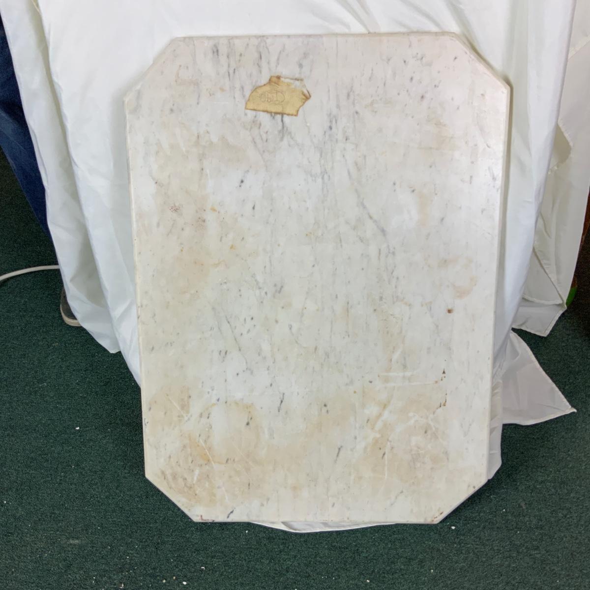 Nice Cream and Avery Marble, cut corners. Could be used as a countertop on a small table. //::\\ Please see photos for details and condition. No attempt has been made to hide any imperfections. All items listed in this auction are warehouse items, and need to be cleaned. A majority of the items need restoration as well. All items are sold AS IS and WITHOUT GUARANTEE. If you are uncertain about an item, DO NOT BID. Due to the nature of this online auction in-person inspection is HIGHLY recommended. All Sales are FINAL. Pick Up Times are FIRM. Please confirm with your own schedule that you can pick up in the scheduled times listed in the Terms and Conditions. Any questions please message the auctioneer. DO NOT Contact The Harp Gallery.
