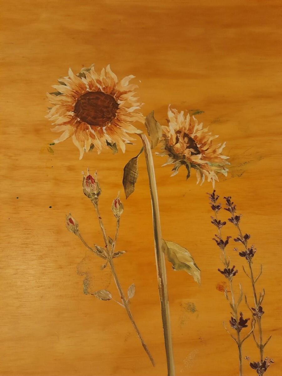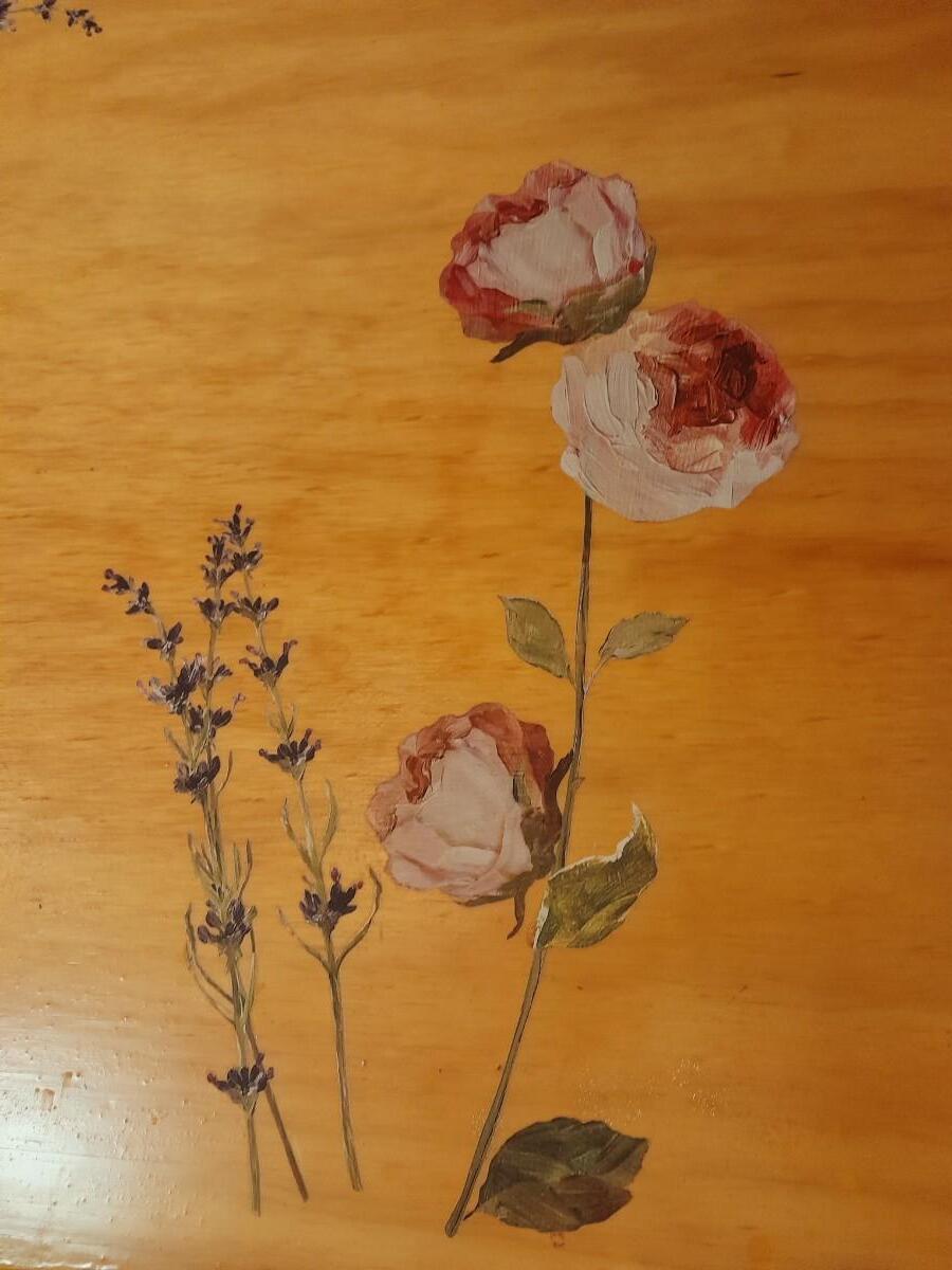 LOT 459 TWO PIECES OF PLYWOOD ONE WITH HANDPAINTED FLOWERS (HD)